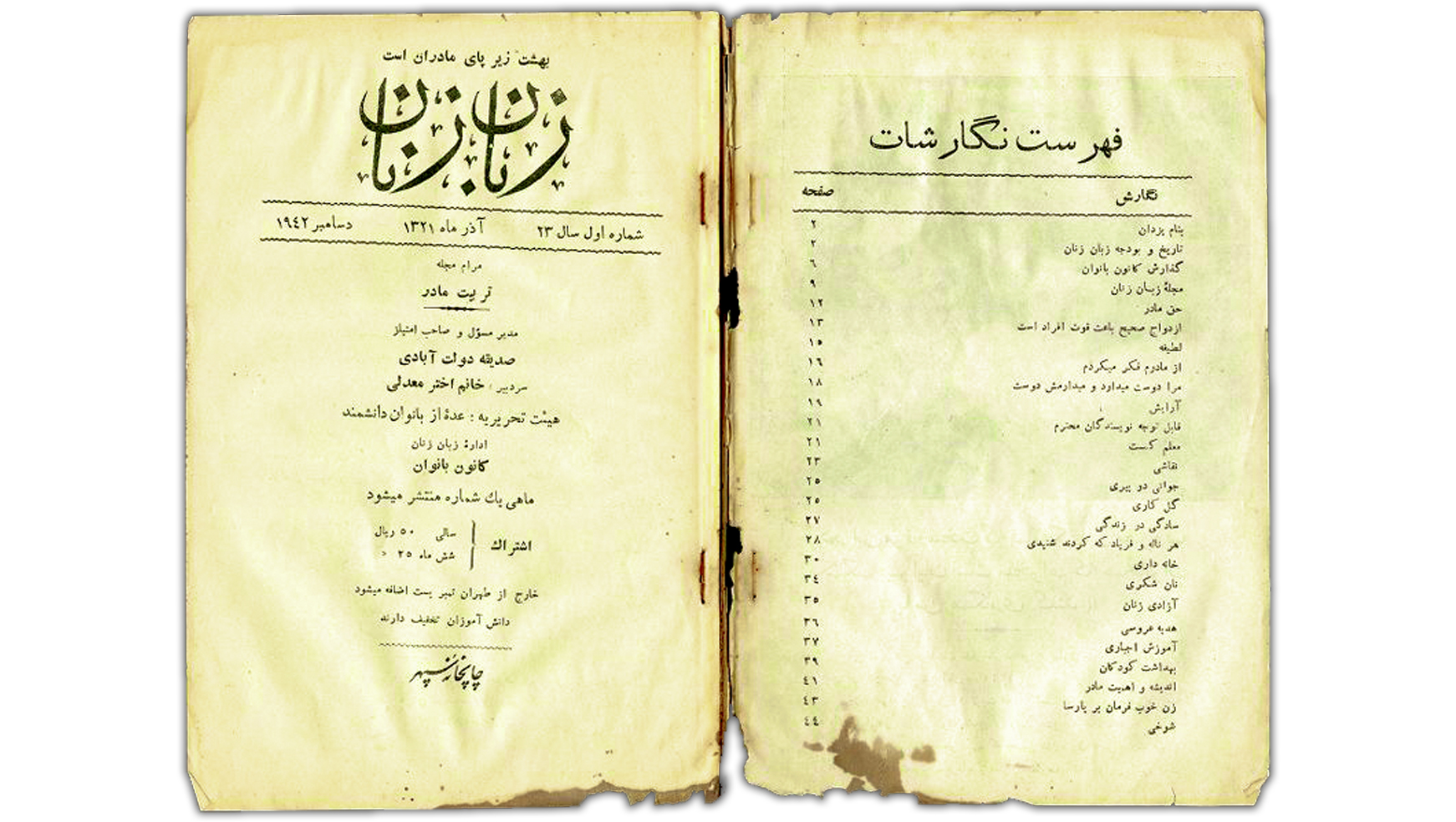 این بخشی از سرمقالهی صدیقه دولتآبادی در نشریهی زبان زنان است که برای سومین بار در آذرماه سال ۱۳۲۱ دوباره منتشر شد.