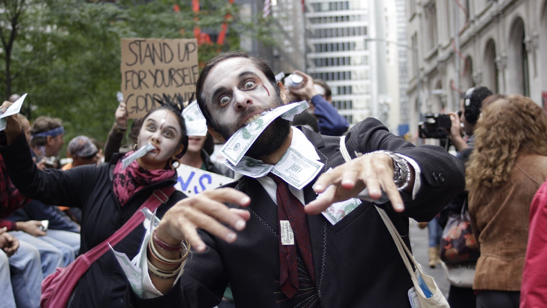 در یکی از روزهای جنبش اشغال والاستریت گروهی از جوانان لباسهایی به شکل زامبی پوشیدند و به تحصن پیوستند. آنها میخواستند با این پوشش نمادی از حیات زامبیوار سرمایهداری را به نمایش بگذارند.