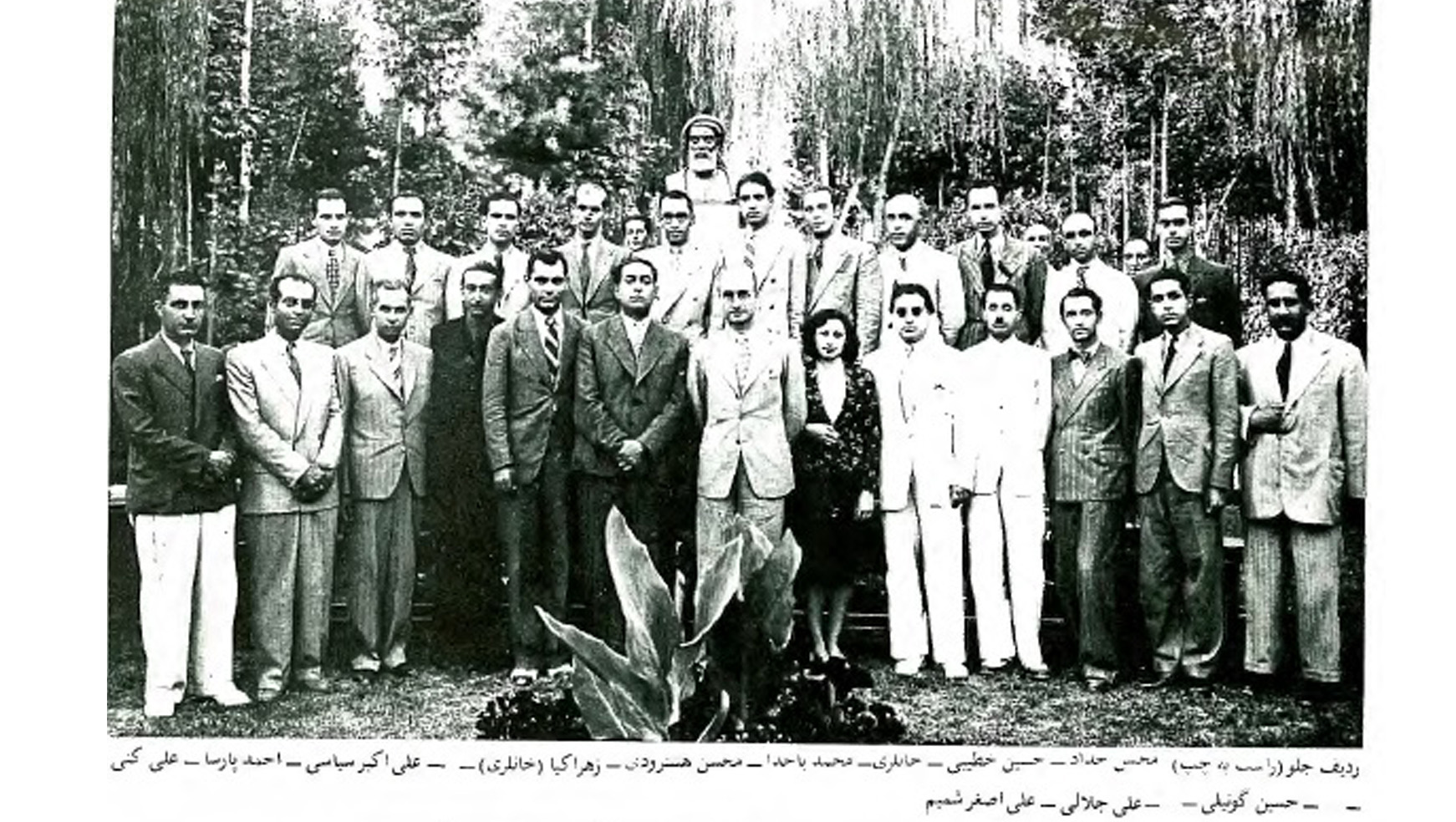 «این دسته که اغلب عصرها در یکی از کافه‌های خیابان لاله‌زار نو موسوم به کافه "رزنوار" جمع ‌می‌شدند. به‌زودی به‌عنوان دسته‌ی ادیبان تندرو در مقابل ادیبان معروف زمان که به نسبت محافظه‌کار بودند به "ربعه" موسوم شدند. دو موسیقی‌دان یکی سرهنگ مین‌باشیان و دیگری حسین سرشار و یک بازیگر و متخصص تئاتر که عبدالحسین نوشین باشد به این جمع پیوستند. در همین دوره یعنی سال ۱۳۱۳ بود که من با او ]هدایت[ و این جمع آشنا شدم و این آشنایی ما به دوستی صمیمانه‌ای کشید که تا پایان عمر او دوام داشت.»