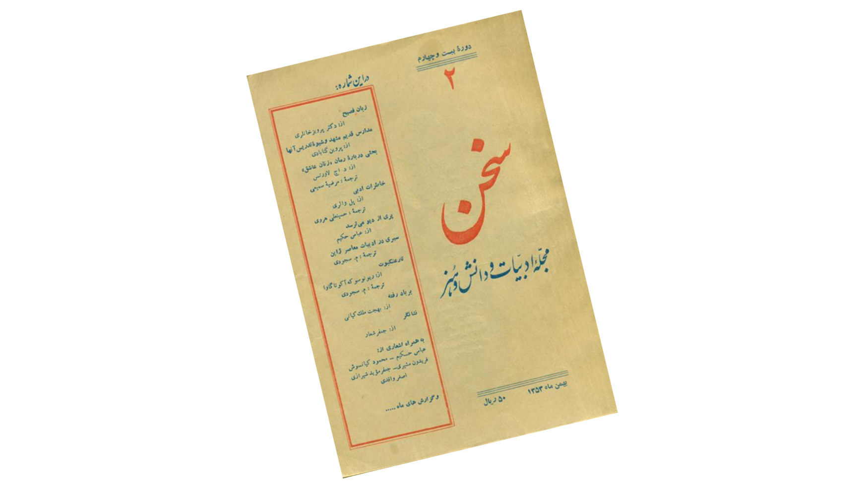 «اهمیت مجله‌ی سخن در این بود که برای نخستین بار آثار نویسندگان معاصر در آن نشر ‌می‌یافت و مطرح ‌می‌گردید. تا آن زمان هیچ‌یک از ارباب مطبوعات جرئت نمی‌کردند داستان‌های هم‌زمانان خود را انتشار دهند و آن را "ادبیات" بخوانند. جمعی از نویسندگان و دانشمندان دور و بر مدیر سخن را گرفته بودند و چند تن مانند جمال میرصادقی و جلال آل احمد و نادر نادرپور آثار خود را ابتدا در سخن منتشر کردند و سرشناس شدند... هنوز هم دوره‌های سخن دایرة‌المعارفی است که هر پژوهشگر را به کار آید.»