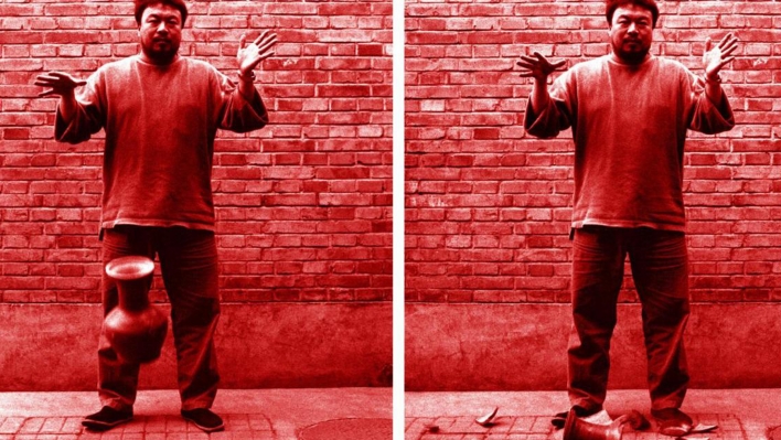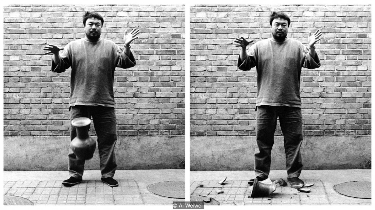 در مقابل، در سال ۱۹۹۵، هنرمند چینی، آی وی‌وی به راستی با نابود کردن یک اثر هنری توانست اثر هنری دیگری بسازد: «انداختن یک کوزه‌ی دورانِ هان». اجرای او به شکل سه عکس سیاه و سفید ارائه شد: هنرمند چینی یک گلدان آیینیِ دو هزار ساله را در دست نگه داشته، گلدان در میانه‌ی زمین و هوا است، و گلدان شکسته بر زمین افتاده است. با خرد کردن آن کوزه، وی‌وی نه فقط ارزش مادی که ارزش فرهنگیِ آن شیء باستانی را هم تخریب می‌کند. و در یک سطح نمادین، این عمل نمایانگرِ طرد و پس زدنِ میراث‌ دوران هان (۲۰۶ پیش تا ۲۲۰ پس از میلاد مسیح)، یعنی دورانی تعیینکننده در تاریخ چین، است. او به این شیوه بیننده را بر می‌انگیزد تا متوجه شود که چه کسی تصمیم می‌گیرد که ارزشهای مادی و فرهنگی همردیف یکدیگر باشند. ولی این‌ها همه تنها در سطح ارائه شدن باقی می‌مانند: در این‌جا با هیچ سیستم سیاسی یا اجتماعی مخالفت نمی‌شود.