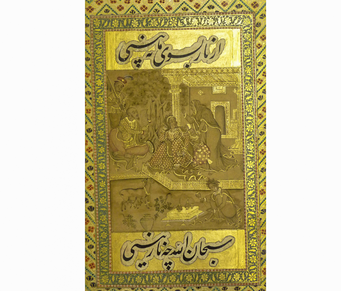 ژزوئیتهای مستقر در گوا، مستعمرهی پرتغال، احتمالاً نخستین اروپاییانی بودند که در اواخر قرن شانزدهم به دربار مغول در فاتحپور سیکری راه یافتند. پس از دریافت دعوتنامهی اکبر شاه (حکمرانی 1608-1556)، امپراتور مغول، آنان در خلال سالهای 95-1580 سه مرتبه به دربار رفتند. هدف آنان از این سفرها تلقین مسیحیت به مغولان بود. در خلال سومین حضور در دربار لاهور، پدر زیرونمو شویر[1] (1617-1549) با همکاری عبدالستار ابن قاسم لاهوری (دوران فعالیت 1615-1590)، مورخ دربار مغول، متنی به زبان فارسی بر اساس عهد عتیق و عهد جدید فراهم آورد، مشهور به «مرآتالقدس». این متن به درخواست اکبر شاه تهیه شد و در سال 1602 در آگره کار آن به پایان رسید. پدر شویر دو نسخه از اثر خود را به اکبر شاه و فرزندش، شاهزاده سلیم (بعدها جهانگیر شاه)، تقدیم کرد. به رغم آن که تبلیغ مسیحیت چندان موفقیتآمیز نبود اما تأثیر آن بر هنرمندان محلی کاملاً آشکار بود. اکبر شاه و سلیم با ایجاد کارگاههای نقاشی، یکی در آگره و دیگری در اللهآباد، به هنرمندانشان سفارش دادند تا برای نسخههایی که از مرآتالقدس در اختیار داشتند تصاویری آماده کنند.