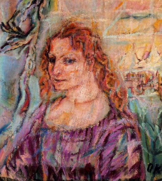 در یکی از عکس‌های به جا مانده از آلما، او را می‌بینیم در کنار فرانتس ورفل، در کافه‌ای احتمالاً در وین. بر دیوار پشت آن‌ها یک نقاشی، اثر کوکوشکا آویخته شده، که تصویری از آلماست. کوکوشکا در ۱۹۱۲ این تصویر را کشیده و همراه پیغامی برای آلما فرستاده بود: «پرتره‌ات را امروز تمام کردم و نه فقط همین، زیباترین نقاشی که تا امروز پرداخته‌ام.» کوکوشکا که منبع الهامش، آلما، را یافته بود او را در ترکیبی شبیه مونالیزای داوینچی، و در هیئت قدیسی اسطوره‌ای تصویر کرده بود.