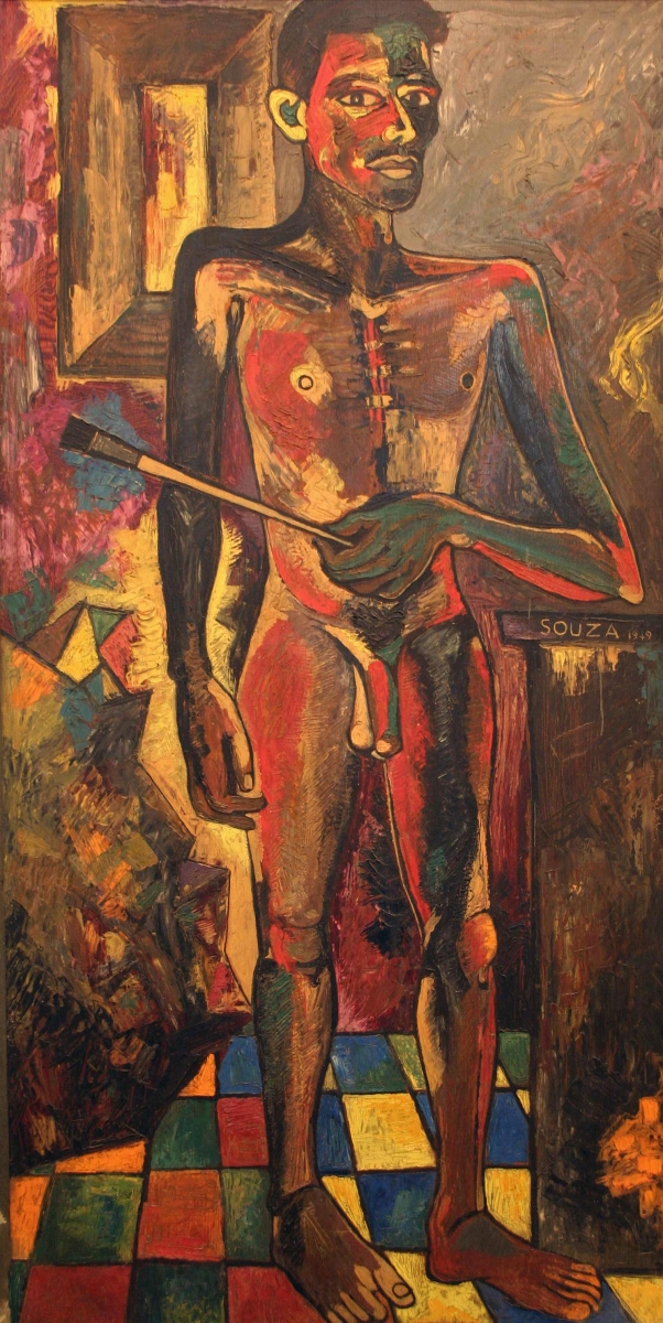 برای مثال، به خودنگارهی (۱۹۴۹) برهنهی سوزا توجه کنید که پیچیده و تا حدی گیجکننده است. از یک سو، این نقاشی مثل فهرستی از شکلهای ازریختافتاده است. شکل شدیداً استخوانی و پسربچهمانند هنرمند به طور خاصی نمایش داده شده، با کاسههای زانوی نامتوازن و نوکپستانهای ناهمشکل، شانههایی افتاده و پاهای کج؛ و بدنش با رنگهای متمایل به سرخ آتشی و تاریک پوشانده شده که در جای جای نقاشی جای خود را به سیاه دودهای مرده داده است. با این حال، این انتخابها در تضاد با حالت شریف و آسیبپذیر چهرهی اوست، و شاید نیازی به اشاره به شیوهی تصویر دستها نیست که به شکلی اغراقآمیز محکم و قوی ترسیم شدهاند و به نظر میآید به مردی بسیار بزرگتر و با حالتی مردانهتر تعلق داشته باشند. (همین آشفتگی با شیوهی استفاده از قلممو هم به شکلی گویا بیان شده است)
