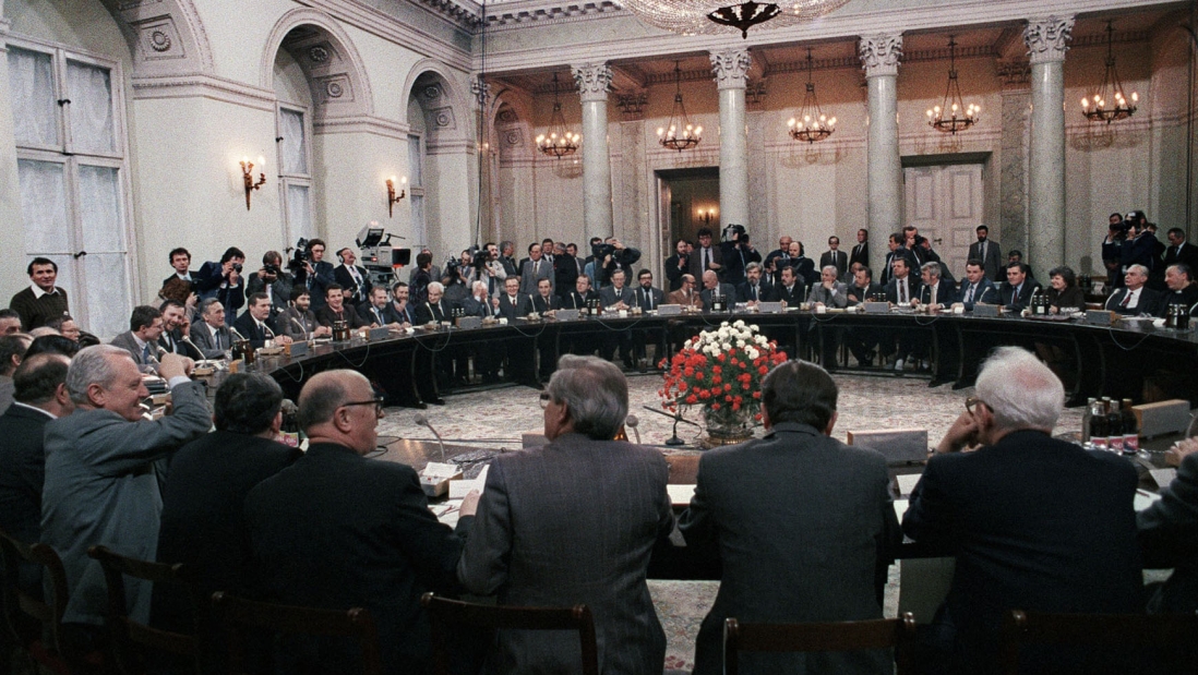«هیچکس نمیدانست که نتیجهی بحثهای میزگرد میان حکومت و اپوزیسیون چه خواهد بود.» مذاکرات میان دولت کمونیستِ لهستان و مخالفان در ورشو، فوریهی 1989. عکس: اِیافپی/گِتی ایمِجِز