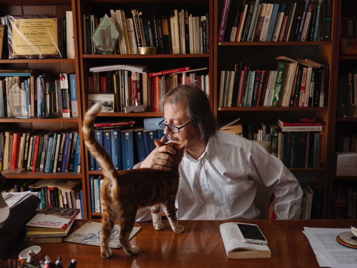 ایلهان اوزگل در خانه. او میگوید، «این جنبشهای ایدئولوژیک پیش از هر چیز به افراد و نهادهای مولد دانش حمله میکنند.» عکس: امین اوزلم/مگنوم، برای نیویورک تایمز