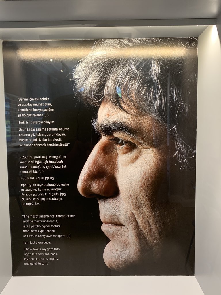 اما بگذارید پیش از آنکه به زندگی حرفهای و باورهای دینک برسیم، از چینش موزه بگوییم که کمتر موزهای شبیه به آن است. موزهای که چنان به ظرافت و دقت و با استفاده از امکانات گوناگون چندرسانهای چیده شده که اگر شما تا قبل از ورود به موزه اسم هرانت دینک را هم نشنیده باشید، هنگام ترک موزه انگار دههها با دینک زیستهاید و سنگینی را بر قفسهی سینهی خود احساس میکنید. موزهای که هر قدم باید بایستید، بخوانید، فیلم یا ویدیویی را تماشا کنید، صدایی را بشنوید، بریدههای قدیمی هفتهنامه را ورق بزنید، با سؤالهای نقشبسته بر دیوار مواجه شوید و بعد پاسخهای اغلب تلخ این سؤالها از «آنچه گذشت» را بشنوید و ببینید.