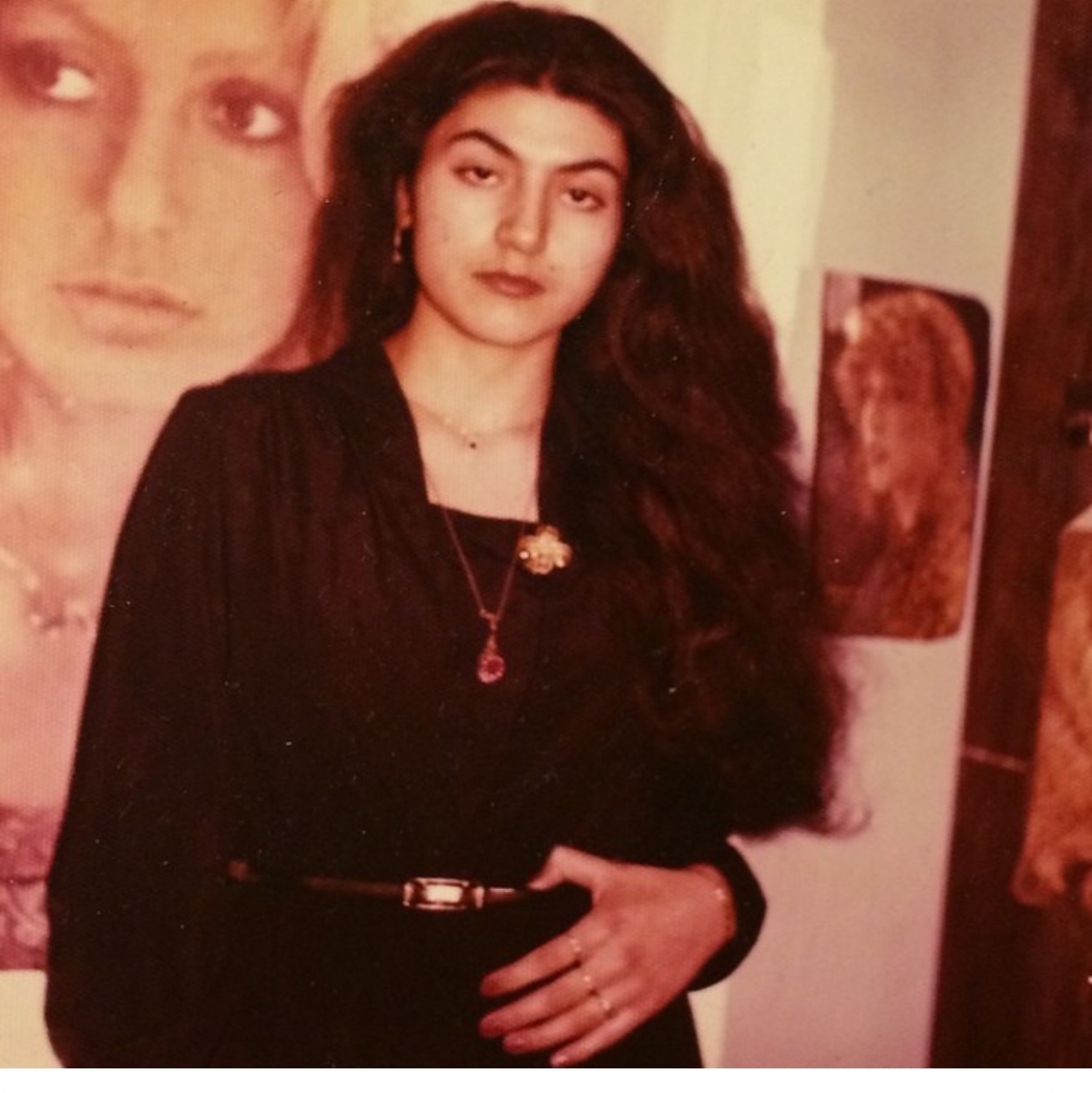 مادر نویسنده در برابر پوستر گوگوش