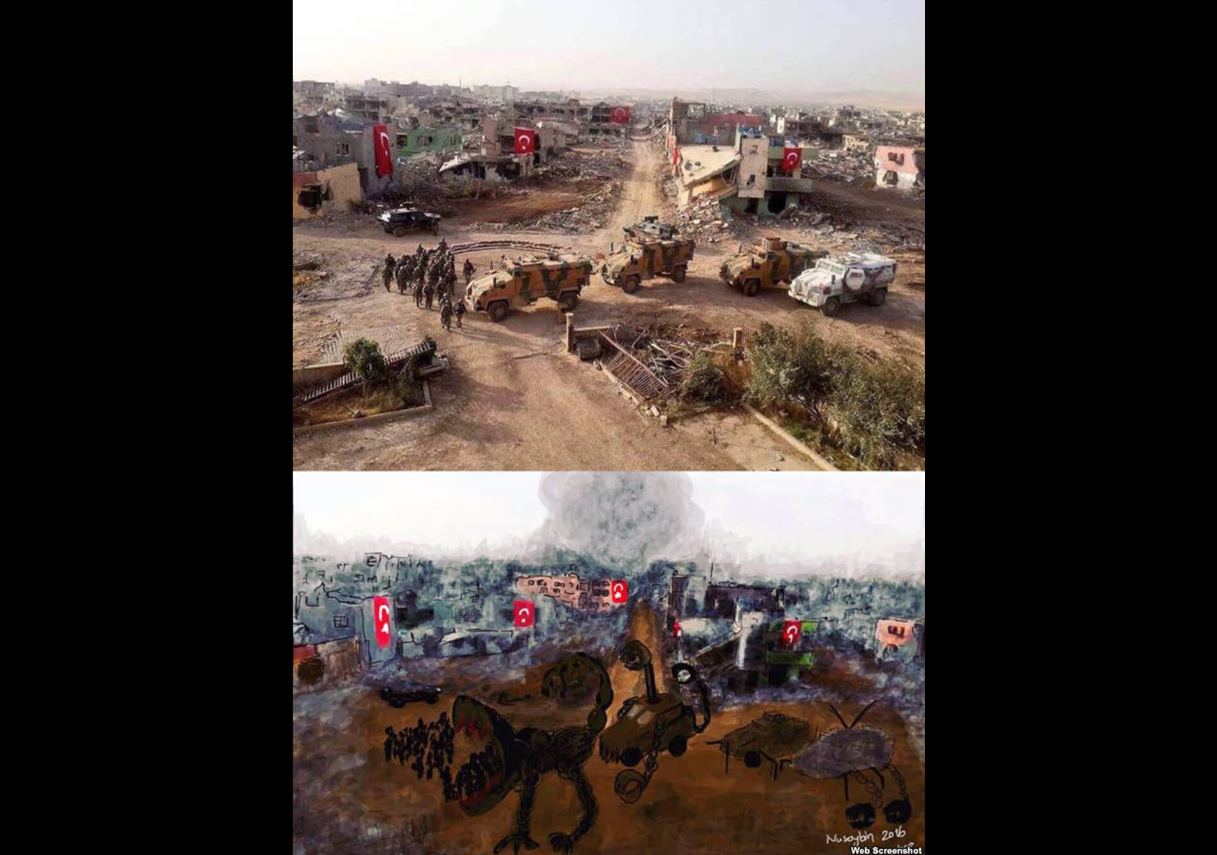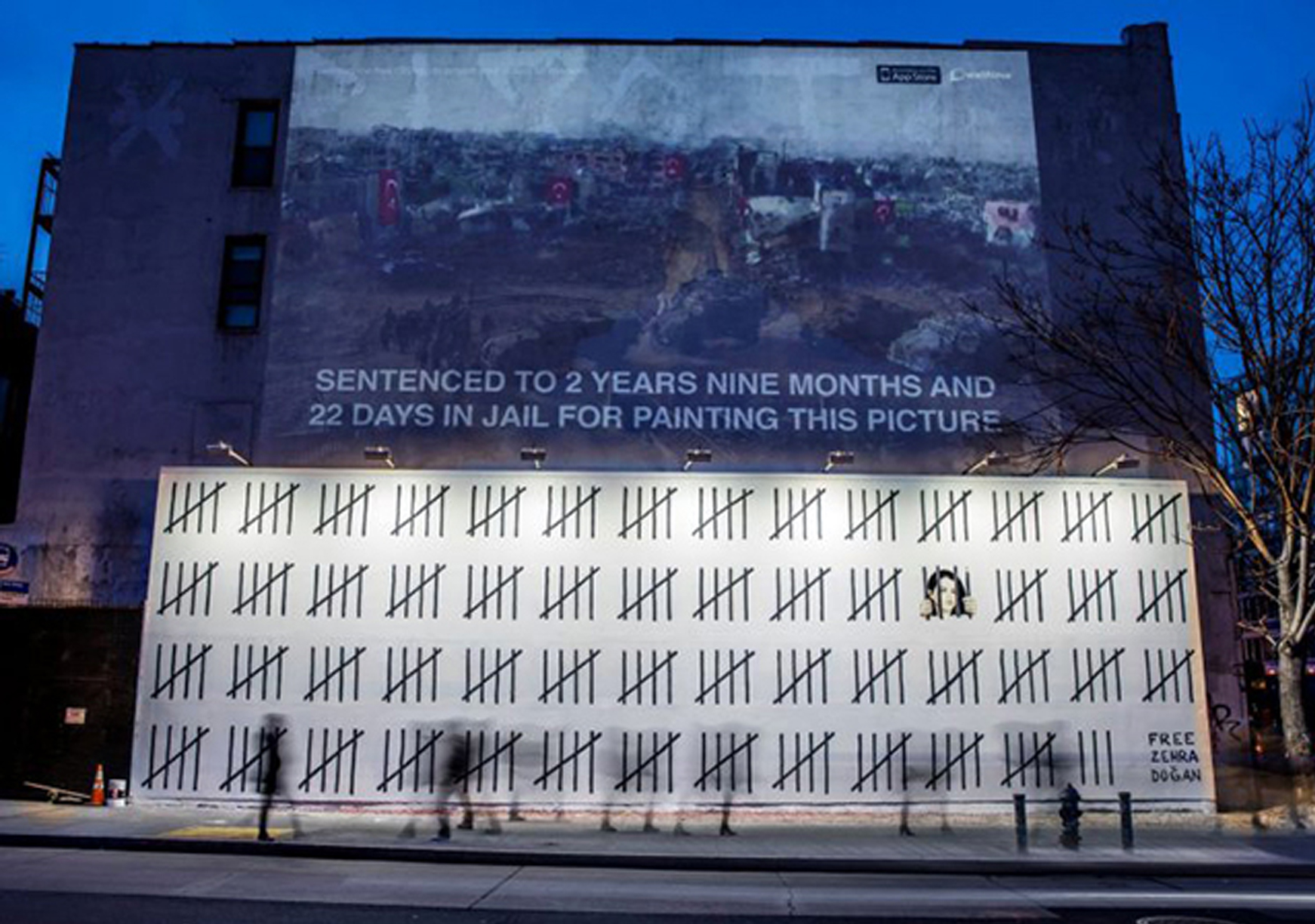 زهرا دوغان در سال ۲۰۱۵ در پی بازنمایی هنری اشغال نظامی شهر نصیبین به دست ارتش ترکیه بازداشت و به دو سال و ده ماه زندان محکوم شد. در آن زمان گفتگوهای صلح میان دولت ترکیه و احزاب کرد به بنبست رسیده بود، و ارتش ترکیه شهرهای کردنشین را سرکوب میکرد. در جریان این حملات شهرهایی مانند نصیبین و سور تقریباً از بین رفتند. زهرا دوغان در یکی از نقاشیهایش پرچم ترکیه را بر ویرانههای به جا مانده از حملهی ارتش به نصیبین تصویر کرده بود.