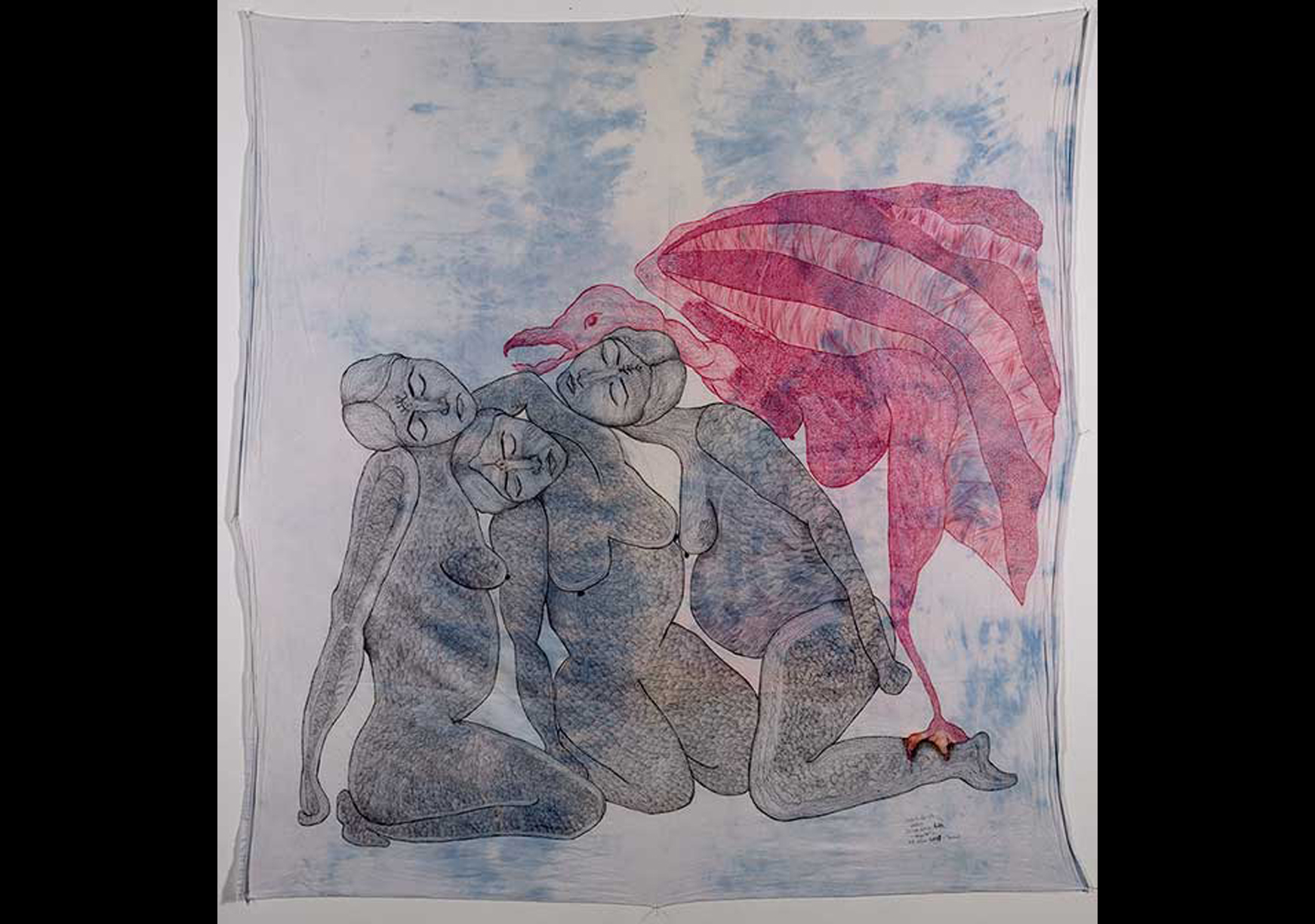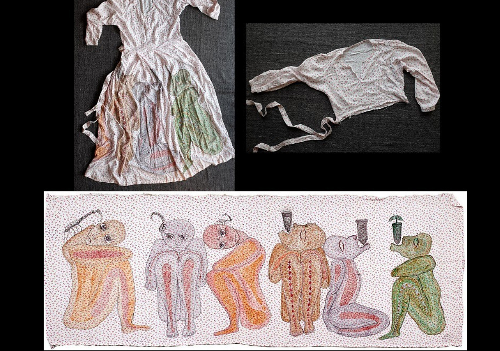 در آن روزها یک بار در هفته در حیاط زندان دورهمی داشتیم. روزهای جمعه بعد از انجام کارهای نظافت به ما اجازه داده میشد تا برای نوشیدن قهوه دورهم جمع شویم. بعد از نوشیدن قهوه تکهای پارچه از لباسی را پاره میکردم و پارچه را روی میز پهن میکردم. هر پارچه ظرافت جذب متفاوتی دارد. بعد روی آن مثلاً قهوه یا خون میریختیم، وقتی پارچه خون را جذب میکند، نمیدانید قرار است کجا بایستد، خلق اثر از دست شما خارج میشود و به انصاف پارچه بستگی پیدا میکند. در این لحظه میایستید و آهنگ پذیرفتن خون توسط پارچه را نگاه میکنید. اینجا شما حکم نمیکنید، تنها صبر میکنید وقتی جریان خون به سمت دلخواه شما میرود، هیجانزده میشوید و در دل میگویید:"کاش اینجا بایستد" اما ممکن است خون به پخش شدن ادامه دهد و باز با خود میگویید: "باشد این هم خوب است، این را هم میتوانم بکِشم". خب در نهایت چه میشود؟ میفهمید که حکمران نیستید و این آرام آرام در تمام زندگیتان تجلی پیدا میکند، چون این روند و تجربه را ناخودآگاه با تمرین و تکرار پذیرفتهاید و درک کردهاید و همین تجربه در تمام ابعاد زندگیتان از روابط عاشقانه و دوستی گرفته تا هر چیز دیگر انعکاس پیدا میکند. یاد میگیرید که افراد را با فهمیدنشان و گوش کردن به آنها ارزشگذاری کنید. بعد از این که تعامل خون و پارچه تمام شد نوبت شما فرا میرسد و حالا هر کاری را که از دستتان بر میآید و دلتان میخواهد میتوانید انجام دهید و آنها هم این اجازه را به تو میدهند و در این چرخه مفاهیمی همچون ادراک، گوش کردن، مشارکت، عشق و مهربانی را یاد میگیرید. ما تمام اینها را هنگام ترسیم این نقاشیها آموختیم. برای همین است که فکر میکنم ارزش این لکهها بسیار زیاد است».