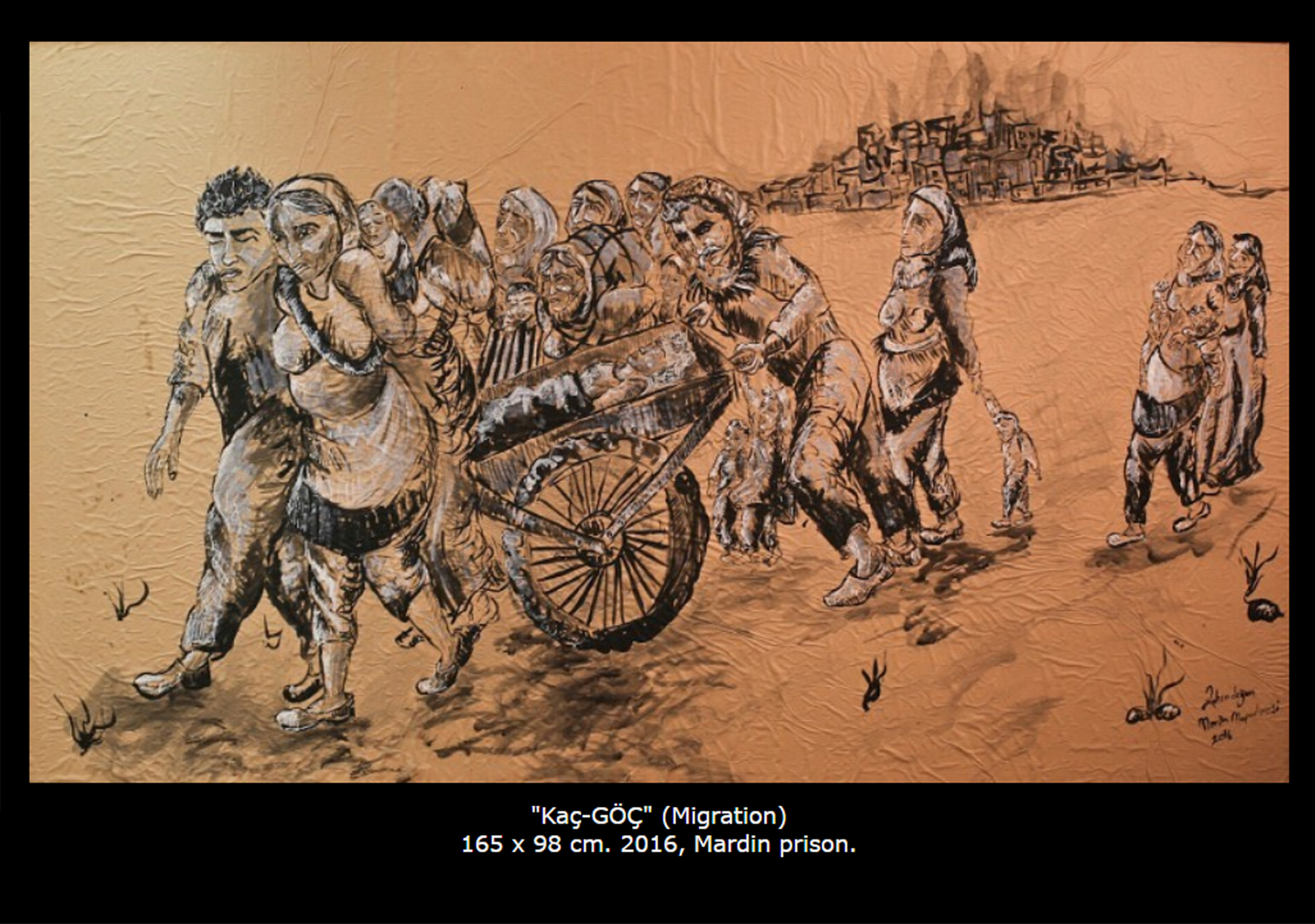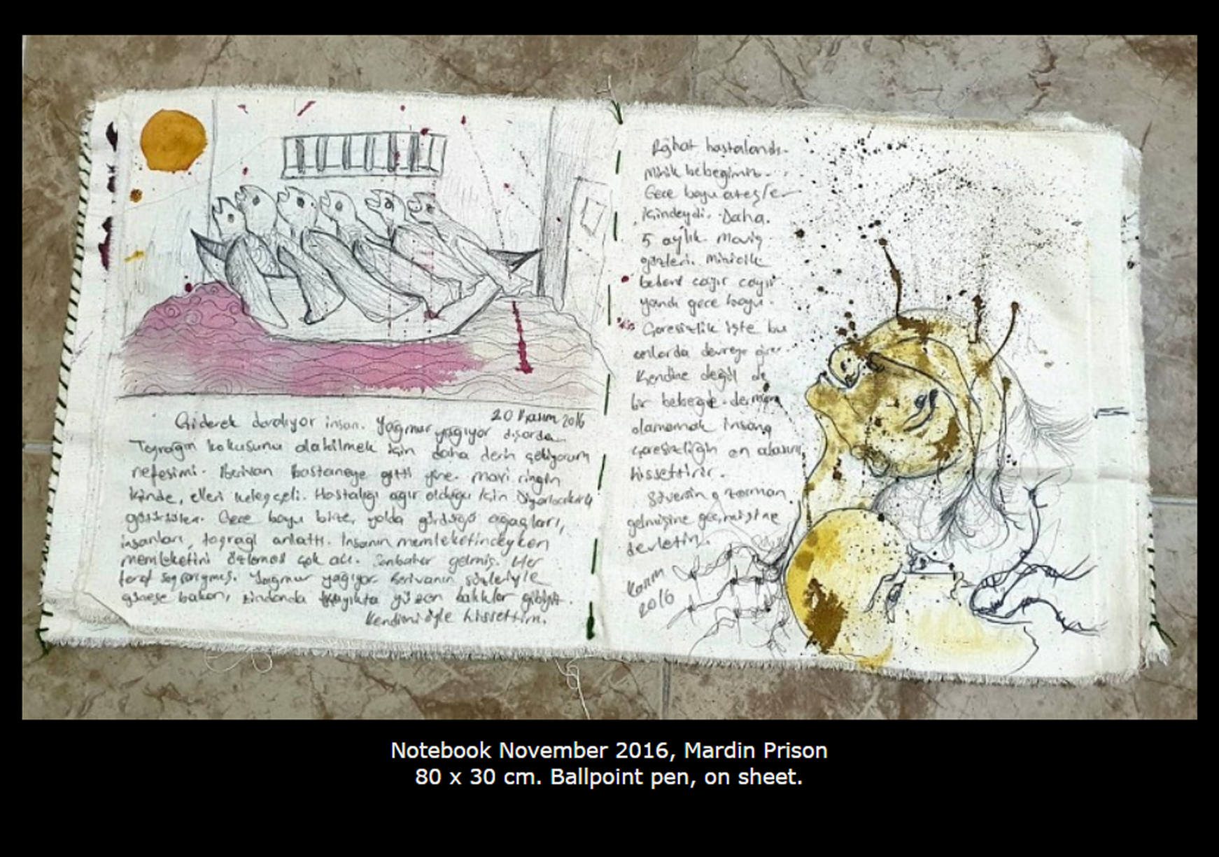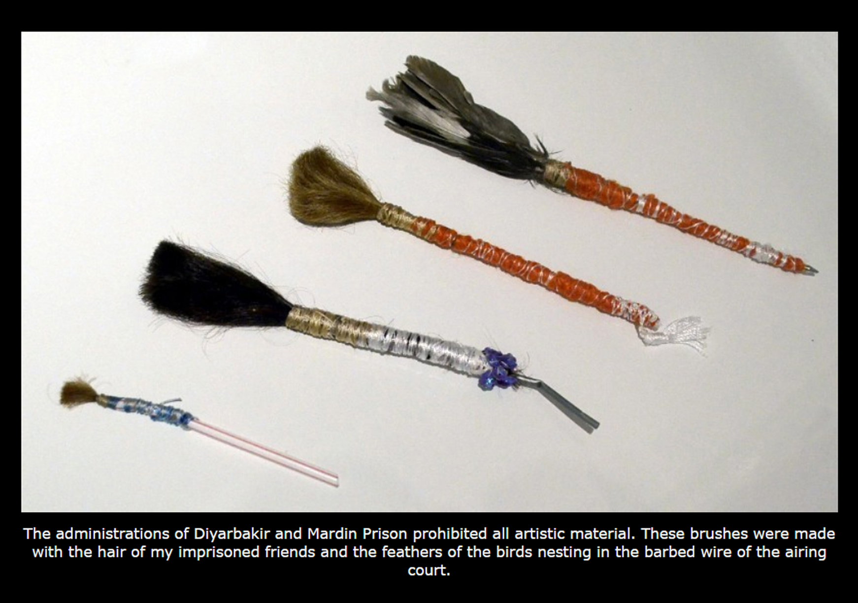 تمام انسانهایی که در حال خلق هستند هر کدام به نوعی هنرمندند چون تلاششان در جهت زیبا کردن زندگی است. تمام آنچه ما در مدرسههای هنری میآموزیم همین است. در زندگی خود من هم درست همین اتفاق افتاد. همه چیز را از مجادلات آموختم. بگذارید مثالی بزنم. پرچم سفیدی را در نظر بگیرید که «تایبت آنا» با پارچهی دم دستی ساخته بود و هفت شبانهروز جلوی خانهاش به عنوان پرچم سفید ایستاد. این پرچم میتوانست یک روسری، دستمال یا هر چیز دیگری باشد اما ما آن را چگونه دیدیم؟ پرچمی که می گفت: "من یک غیر نظامی هستم و اینجا خانهی من است" و شما زمانی که به آن نگاه میکردید برای درک منظور تایبت آنا نیازی به کلمات نداشتید. او حرف نمیزد، فریاد نمیکشید، هیچ نمیگفت اما شما او را میفهمیدید و این تنها به واسطهی آن پرچم سفید بود که بین ویرانهها آویخته شده بود. پارچهی سفید هرچه هست ما نمیدانیم اما وقتی تایبت آنا آن را در اوج حملهی نظامی ارتش دولت ترکیه به شهر و محل زندگیاش از روی ترس و استیصال و برای حفظ جان فرزندانش بر در خانه میآویزد، مفهومش را درک میکنیم. من میگویم هر چیزی میتواند به چیزی کاملاً متفاوت تبدیل شود و هنر راه بیان این اصل است. یک برگ روکا، یک فنجان قهوه، خون عادت ماهیانهی زنان در زندان، اینها تمام آن چیزهایی بود که من در کشیدن نقاشیهایم از آنها استفاده کردم. اما حالا زمانی که شما به نقاشیها نگاه میکنید چه میبینید؟»