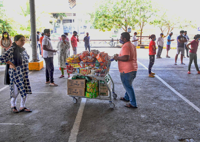 در بنگلور مردم برای خرید مایحتاج خود از فروشگاهها صف بستهاند. Getty Image