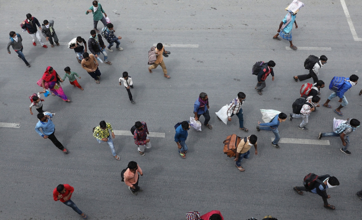 کارگران مهاجر به سمت آزادراهی در حرکتاند که به خارج از دهلی نو میرسد، به این امید که به روستاهای خود بازگردند.