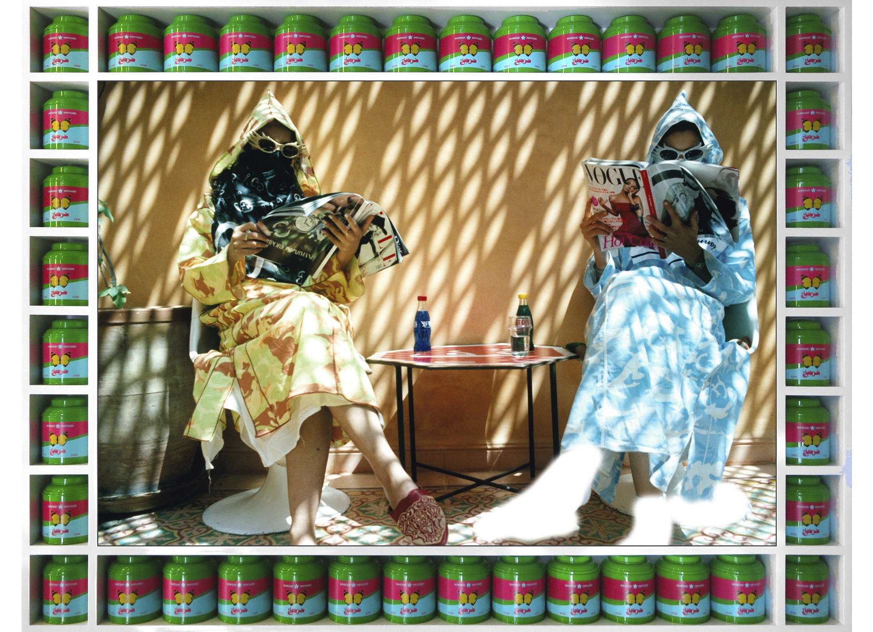امسال بخشی از همان نمایشگاه پاریس او، مجموعه‌ی «وگ، نسخه‌ی عربی» به استکهلم سفر می‌کند و اگر شرایط بهداشت جهانی اجازه بدهد، طبق برنامه‌ی تعیین‌شده ماه سپتامبر در نیویورک به نمایش گذاشته می‌شود. این مجموعه به شکل آشکارا کنایه‌آمیزی تصویر غالب از مد را که عکاسان غربی طی چند دهه با استفاده از مدل‌های غربی در عکس‌های خود ساخته‌اند، به کناری می‌گذارد و بازتعریفشان می‌کند، مدل‌هایی که در مناطقی «غریب و خاص» مثل بخش قدیمی شهر مراکش[10] لباس غربی می‌پوشند. در یک تصویر نمادین از این مجموعه عکس حجاج، دو زن مراکشی راحت و بی‌تفاوت بر صندلی‌های پلاستیکی ارزان نشسته‌اند و مجله‌های «وگ» و «ال»[11] می‌خوانند در حالی که عینک‌های آفتابی خنده‌داری به شکل بال پرنده بر چشم زده‌اند و بطری‌های کوکاکولا بر میزی میانشان قرار دارد.