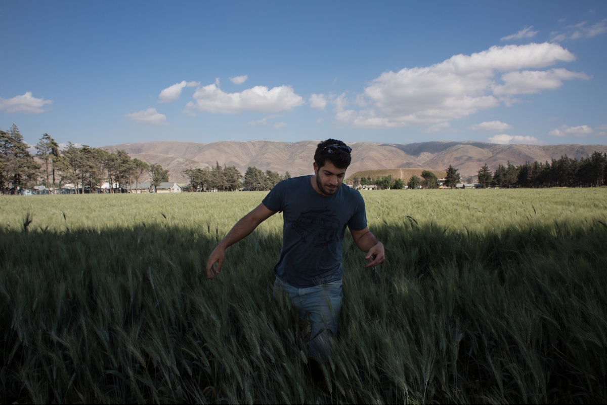 دره‌ی بقاع در لبنان. 19 مه 2016. ابراهیم شهاب در در وقت استراحت، در حال عبور از یک گندم‌زار. عکس‌ از ریتا قبلان.