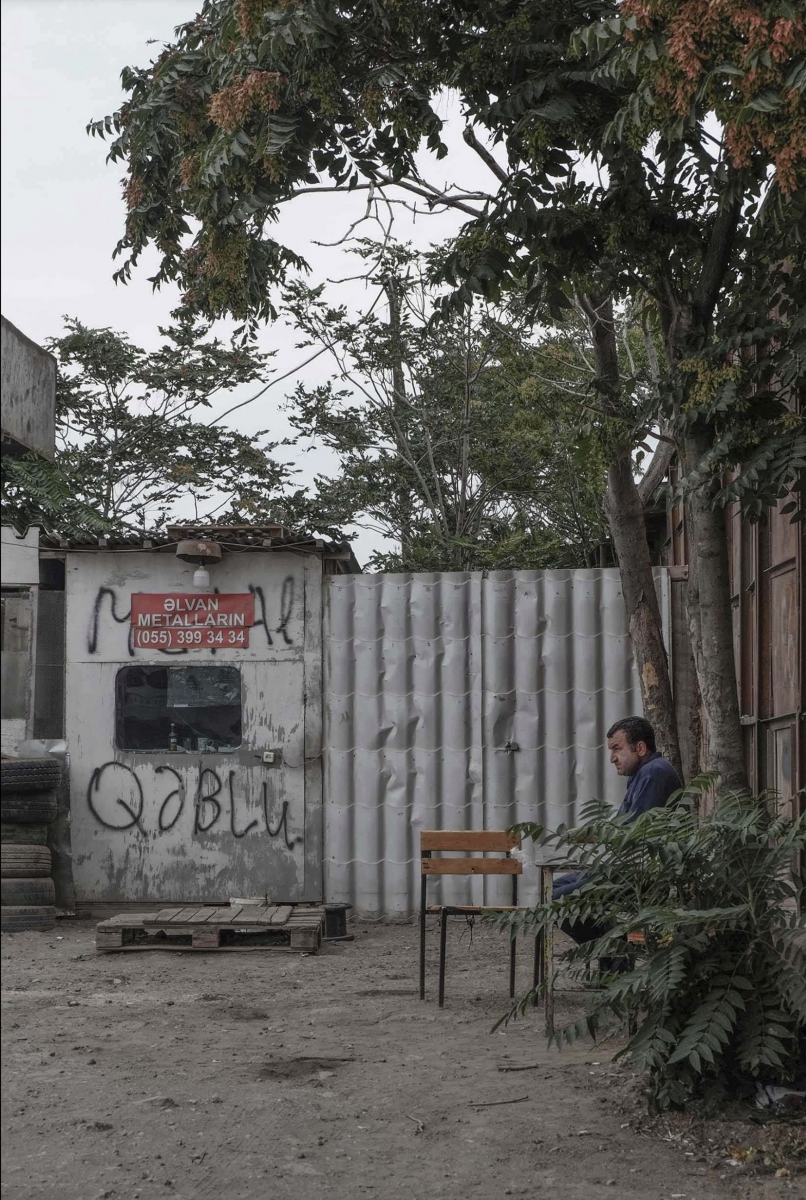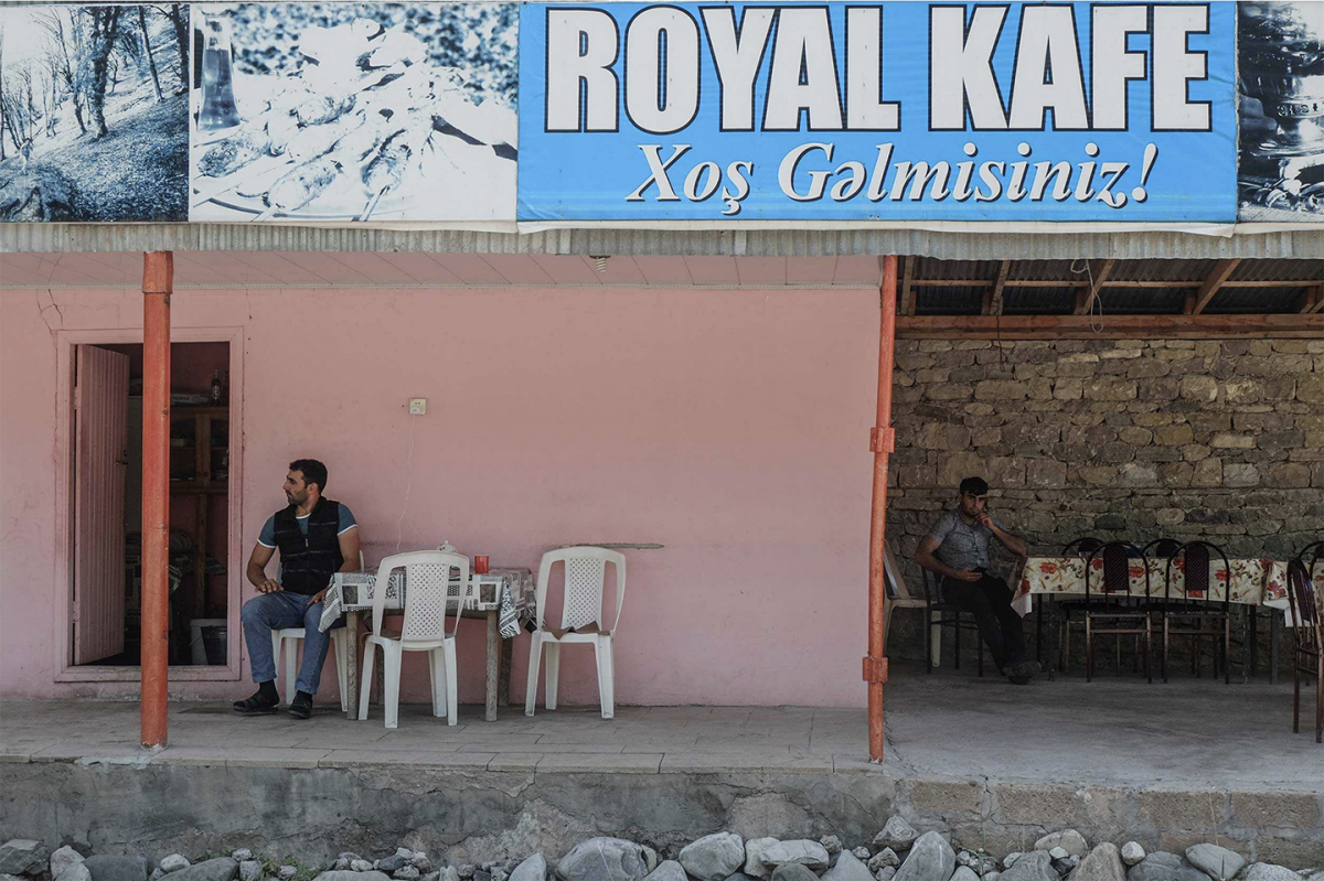 کافهای روباز در نزدیکی منطقهی ۲۰ یانوار باکو، محلی در نزدیکی پایانهی مسافربری بینالمللی که معمولاً بسیار شلوغ است.