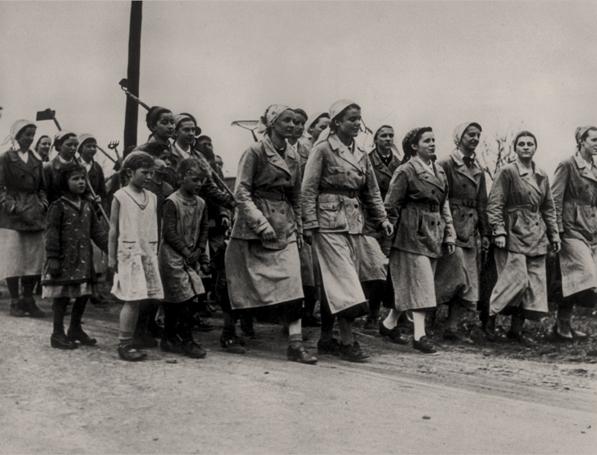 زنان آلمانی عضو نیروی کار در حال اعزام به کارهای باغبانی