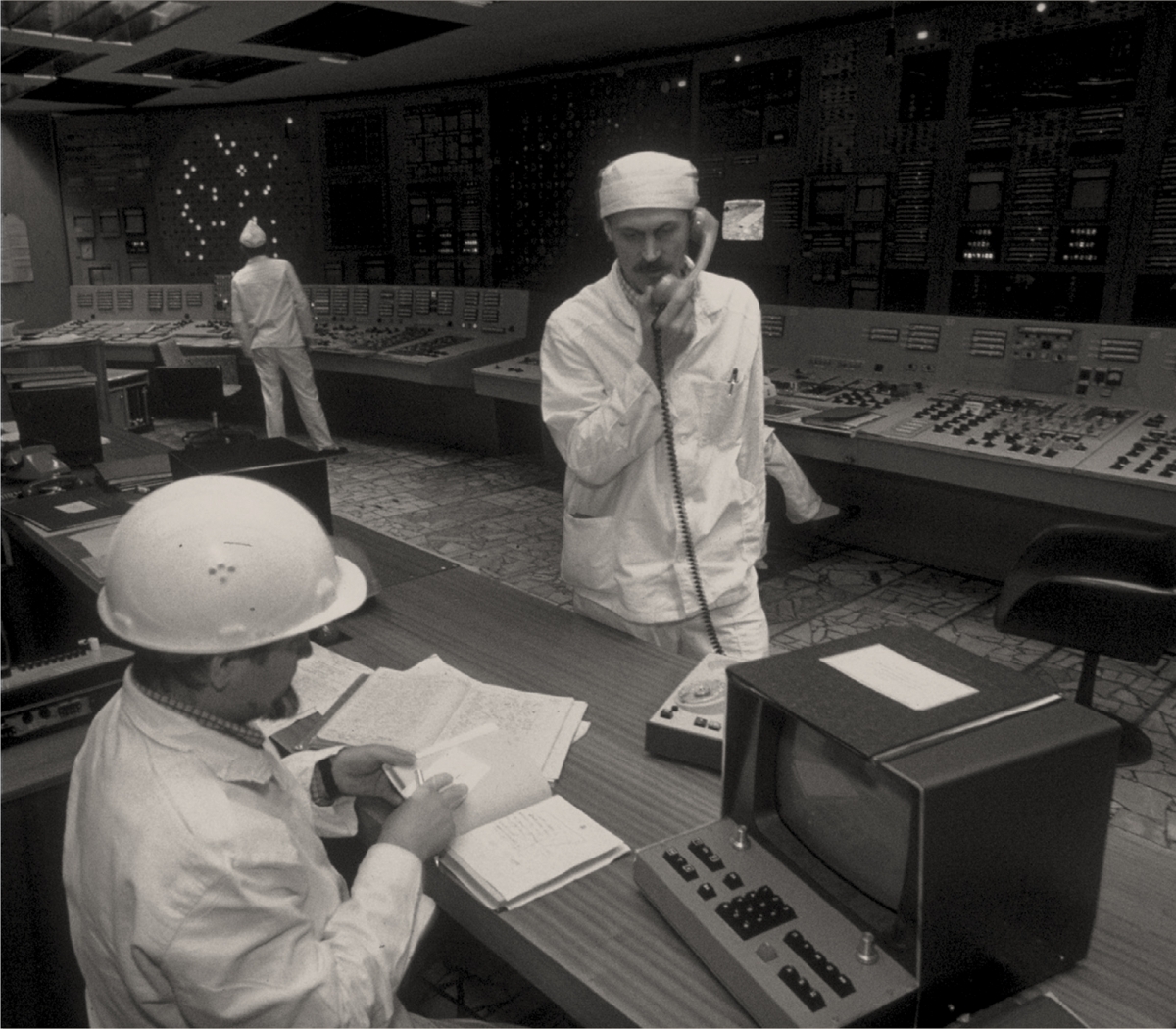 مردان در حال کار در نیروگاه هستهای چرنوبیل که در سال 1986 در آن فاجعهی اتمی رخ داد