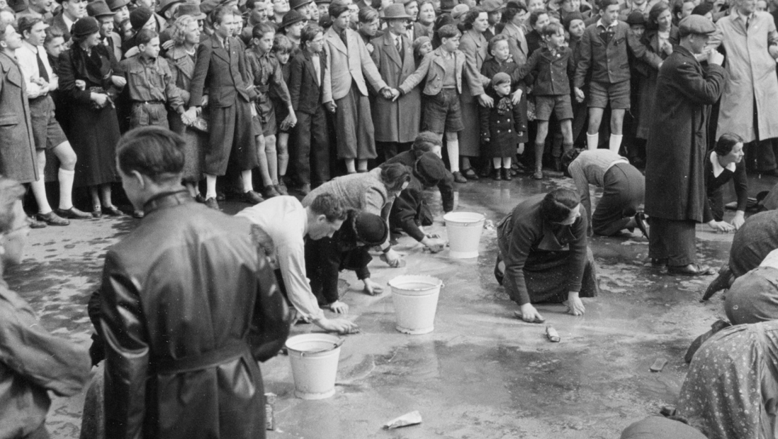 یهودیان وینی سرگرم نظافت اجباریِ خیابانها در سال 1938. عکس: یاد واشِم