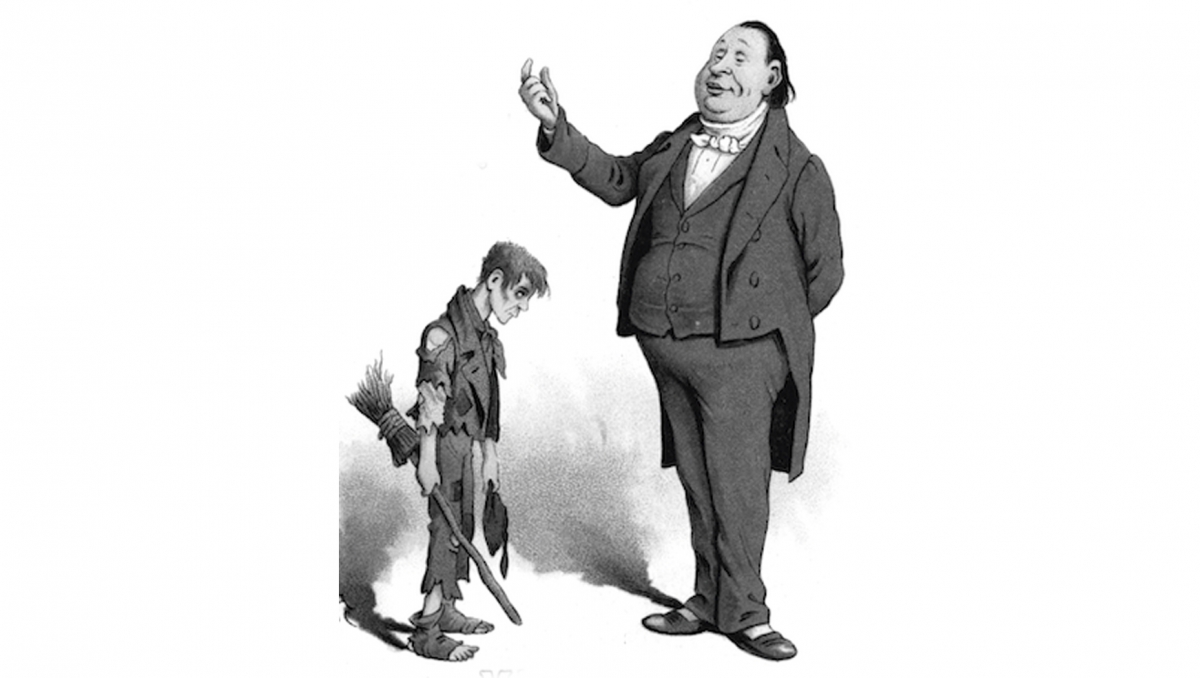 جو رفتگر و آقای چادبند، شخصیتهای رمان «خانهی متروک» اثر چارلز دیکنز ــ این نویسندهی بزرگ دوران ویکتوریا به خوبی به نابرابریِ منزلت پی برده بود. عکس: لِبرِخت میوزیک اند آرتس/ اَلَمی