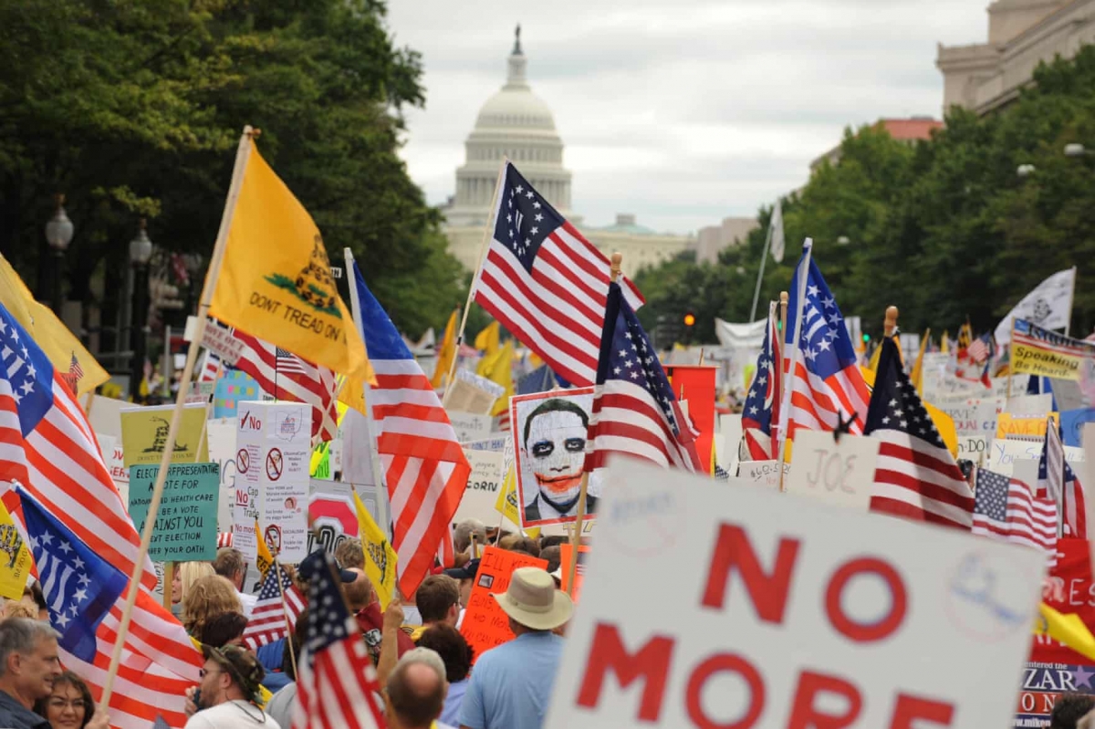 تظاهرات حامیان تی پارتی در واشنگتن در سال 2009 در اعتراض به اصلاحات پیشنهادی اوباما در نظام مراقبت درمانی. عکس: مایکل رینولدز/ایپیاِی