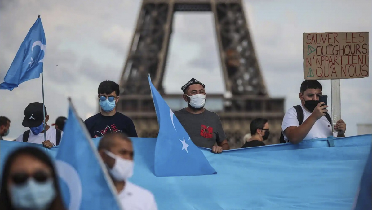 تظاهرات اویغورها و حامیان آنها در سال ۲۰۲۰ نزدیک برج ایفل در پاریس