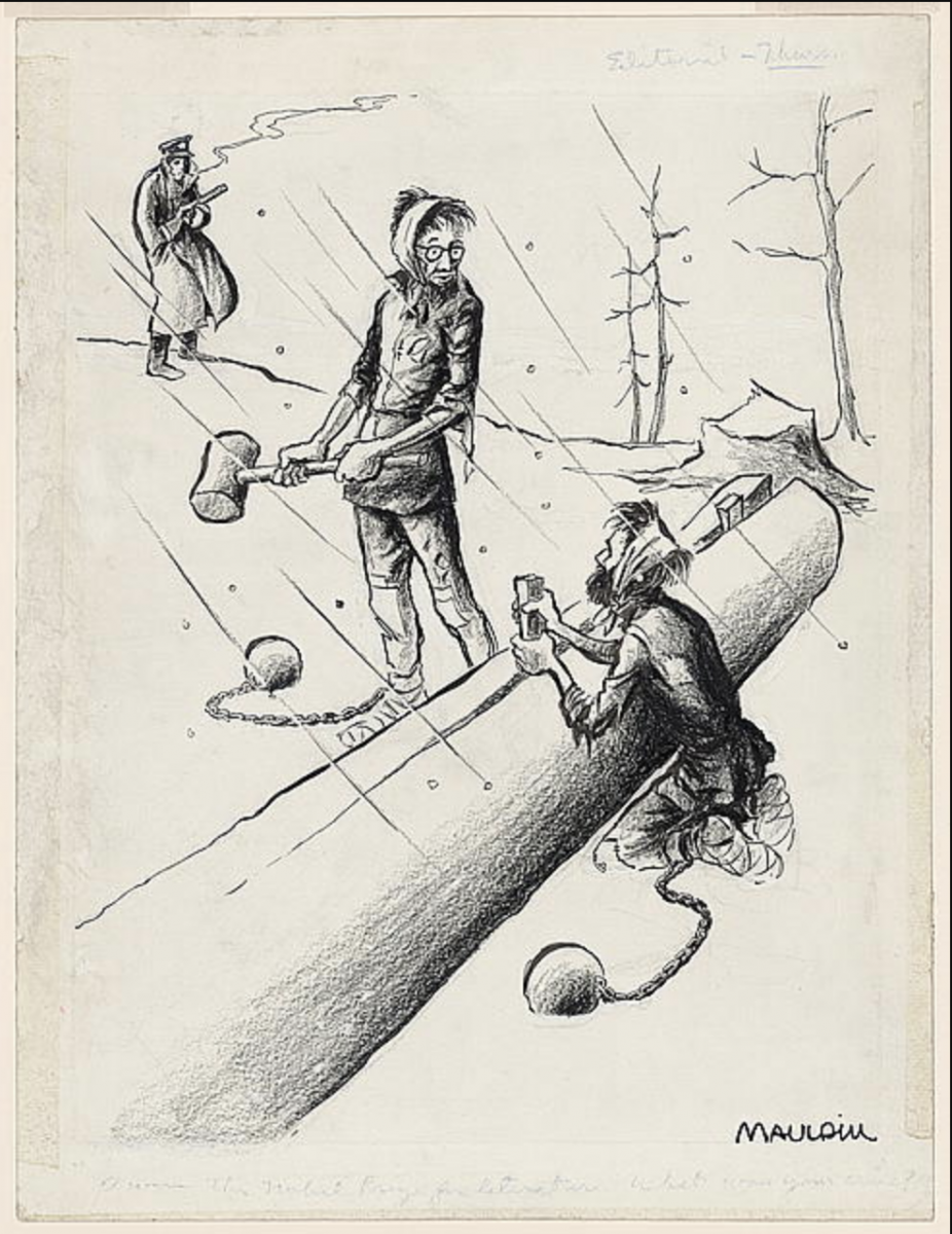 این کاریکاتور جایزه‌ی پولیتزر را برای بیل مولدین به ارمغان آورد.
