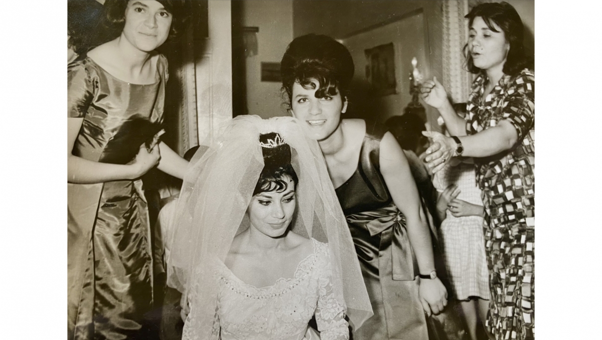 مراسم ازدواج دکتر هما دارابی. تنها خواهرش کنار او ایستاده است