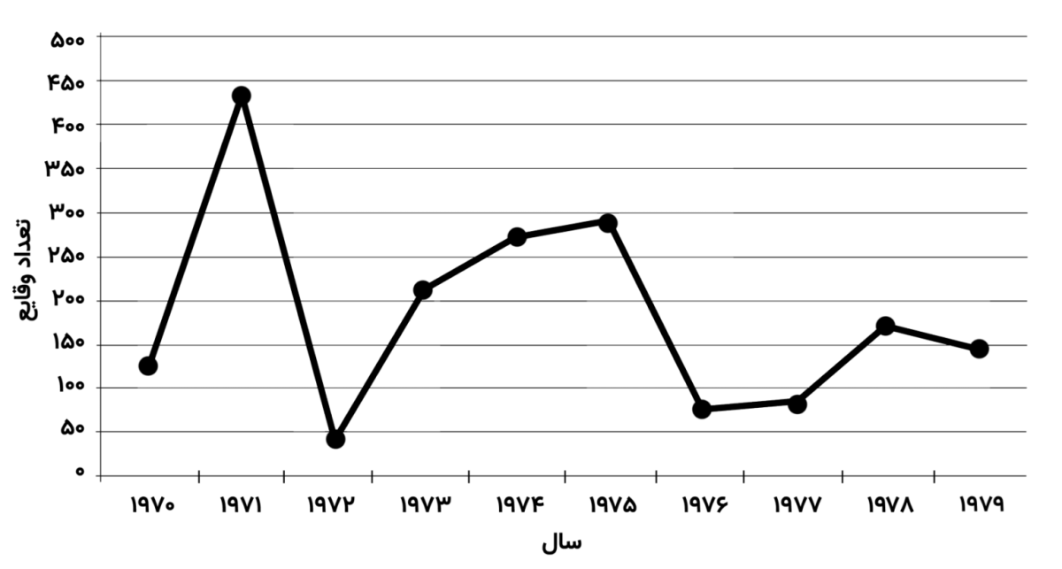 نمودار ۱: تعداد رخدادهای اعتراضی در هر سال