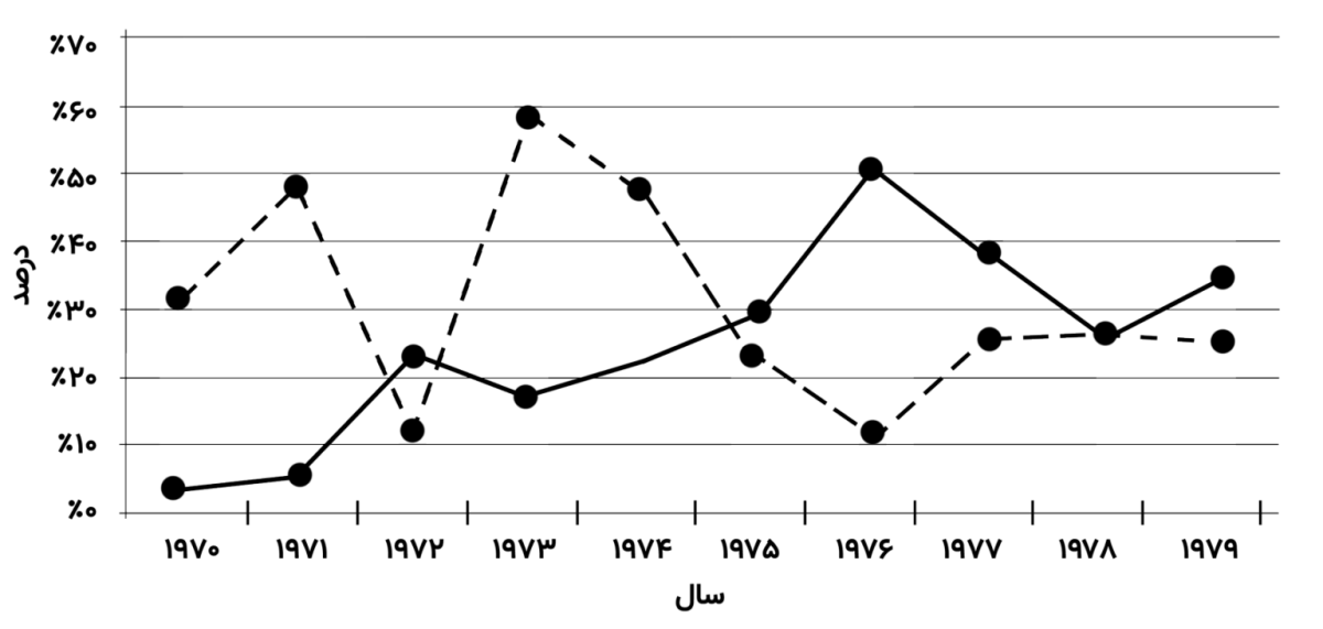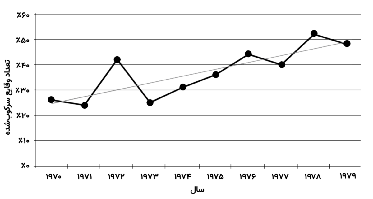 نمودار ۲: درصد رخدادهای اعتراضی که سرکوب شدند
