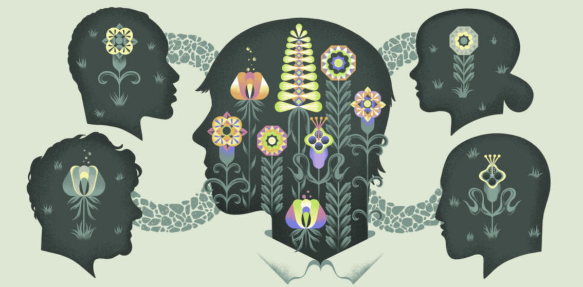 3. قدم‌نهادن در آن سوی پرچین‌هایی که طی سال‌ها در پیرامون شخصیت خود ساخته‌ایم: اخیراً تصویرگری به نام مارینا مون (Marina Muun) باغی را به‌شکل نیم‌رخ یک انسان به تصویر درآورده است که به باغ‌های دیگر ــ ذهن دیگران ــ راه دارد و گل‌های زیادی از باغ‌های پیرامون را به باغ ذهن خود راه داده و در آنجا پرورانده است. این تصویر گویای آن است که اگر ایده‌های دیگران را بی‌هراس به ذهن خود راه دهیم و به آنها مجال بالیدن دهیم، در واقع، بخشی از امکانات ناشکفته‌ی دیگران را در ذهن خویش شکوفا ساخته‌ایم. معنای دیگر این تصویر آن است که ایده‌های ما نیز می‌توانند در ذهن دیگران ببالند و بشکفند. رشد و بالیدنِ امکانات تحقق‌نیافته‌ی ما در گرو دادوستد با دیگران است. ایده‌ها باید مثل آبِ جاری و در چرخه‌ای از یادگیری در جریان باشند تا ببالند و بشکفند، والّا راکد می‌مانند و می‌گندند. گاه باید جرئت کنیم و به آن سوی پرچین‌هایی که طی سال‌ها گرداگرد شخصیت‌ خود ساخته‌ایم قدم بگذاریم. و گاه لازم است که در سرزمین‌های بکر هستی دست به ماجراجویی بزنیم. و درمقابل، به اندیشه‌های دیگران، به افکار نو، مجال دهیم تا در هستی ما دست به ماجراجویی بزنند، ذهنمان را بکاوند و خاکی برای رشدکردن و بالیدن بیابند.