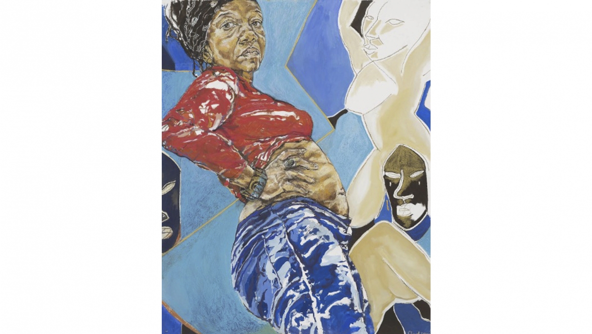 کلودت جانسون، هنرمند بریتانیایی، پیکرهای سیاه را در مقیاسی بزرگ و با بافتی لغزان و متحرک به تصویر درآورده است. فیگورها از مرزهای مادی-فیزیکیِ اثر فراتر میروند و بر بیرونزدن از قابها پای میفشارند. آنها هویتشان را به چارچوبها تحمیل میکنند. تنها گرچه در زندگیِ روزمره به تصویر درآمدهاند، اما ابعاد بزرگ و حماسیشان و نیز میلشان به فرارفتن از محدودیتها، وجهی مقاوم و ستیزهجویانه به آنان میبخشد. در فیگور ایستاده با صورتکهای آفریقایی (۲۰۱۸)، نقابها و پیکرهای پسزمینه و تکههای موزائیکیِ رنگی، سویهی تلفیقیِ هویتِ زن، ترکیبی از پرسوناهای دیروز و امروز، را بازنمایی میکند.