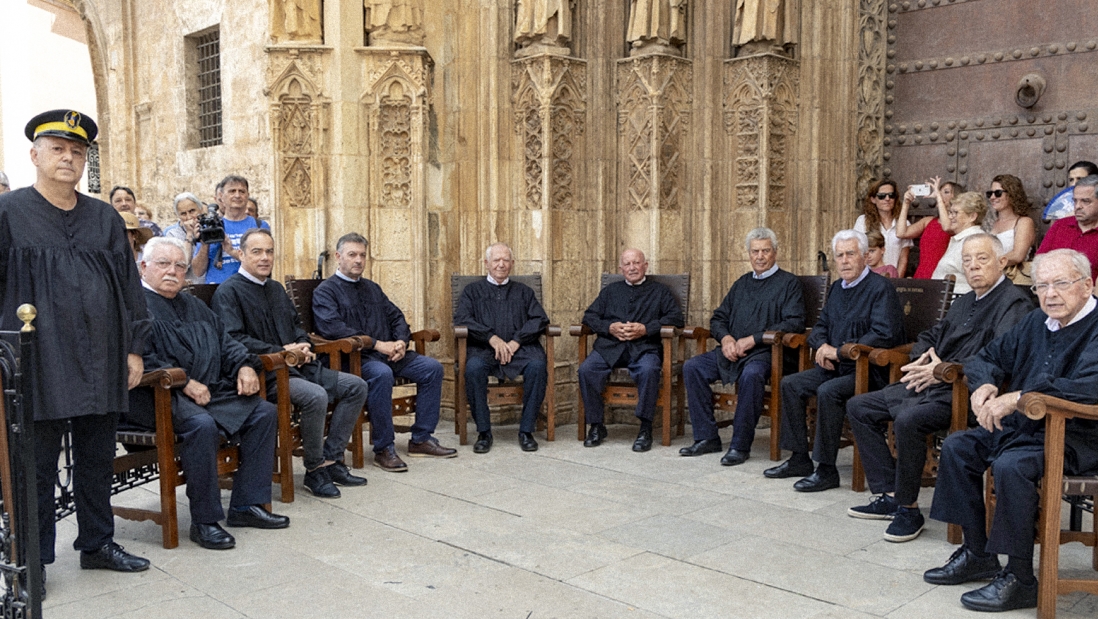 صدها سال است که هر پنجشنبهظهر، نُه مرد سیاهجامه ــ که یکی از آنها کلاهی لبهدار با نواری رنگی بر سر و نیزهای تشریفاتی در کنار دارد ــ بیرون درِ غربیِ کلیسای جامع والنسیا جلسهی هفتگیِ خود را تشکیل میدهند. این «هیئت حل اختلاف آیووِس» است ــ دادگاهی آبی که شاید قدیمیترین نهاد قضائی در اروپا باشد.