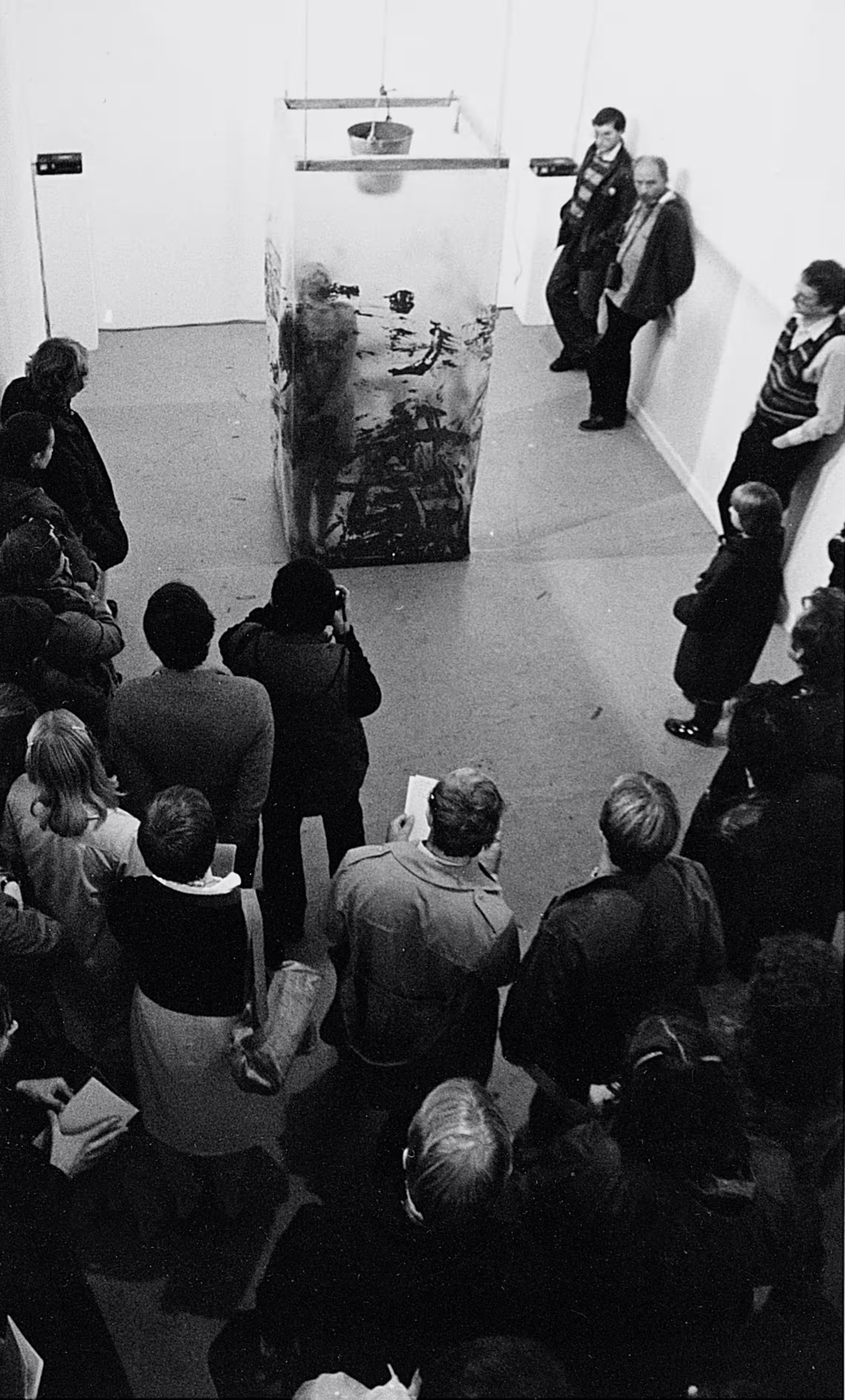 در سال ۱۹۸۲ نیز یکی از آثار او با عنوان «تحت محاصره» با بهت و تحسین و انتقاد روبهرو شد. حاطوم در این اثر برهنه بود، بر تن خود سفال مالیده و در میان یک محفظهی شیشهای شفاف نشسته بود. او ۷ ساعت بیوقفه میکوشید تا در این محفظهی شیشهای بدون آب «شنا» کند و خود را به سطح آب برساند اما هربار سرخورده دوباره انگار در آب فرو میرفت. هرچه بیشتر تقلا میکرد، رنگ محفظهی شیشهای بر اثر تماس با دستها و بدنِ پوشیده از سفالِ او کدرتر و پر از گل و لای میشد. با هر تقلای او سرودهایی انقلابی به زبانهای عربی، فرانسوی و انگلیسی همراه با پسصدای آخرین اخبار خاورمیانه در سراسر گالری پخش میشد. طی این ۷ ساعت، منا حاطوم چیزی نمیگفت. بعضی از تماشاگران دچار تشویش شدند، بعضی دیگر اثرش را «بیش از حد ماجراجویانه» شمردند و بعضی دیگر ناراحت شدند و گفتند چطور این زن فلسطینی جرئت کرده است که از دو کشور میزبان خود ــ لبنان و بریتانیا ــ انتقاد کند! در عین حال، بسیاری از منتقدان هنری مبهوت خلاقیت او شدند و وی را ستودند. حاطوم بعدها گفت که در آن دوره احساس میکرد که قادر به بیان درد و رنج خود و انتقاد از وضعیت فلسطینیها، لبنان، دیگریبودن در بریتانیا و سیاست نیست و بدنش تنها ابزار واقعیِ او برای بیان احساساتش بود.
