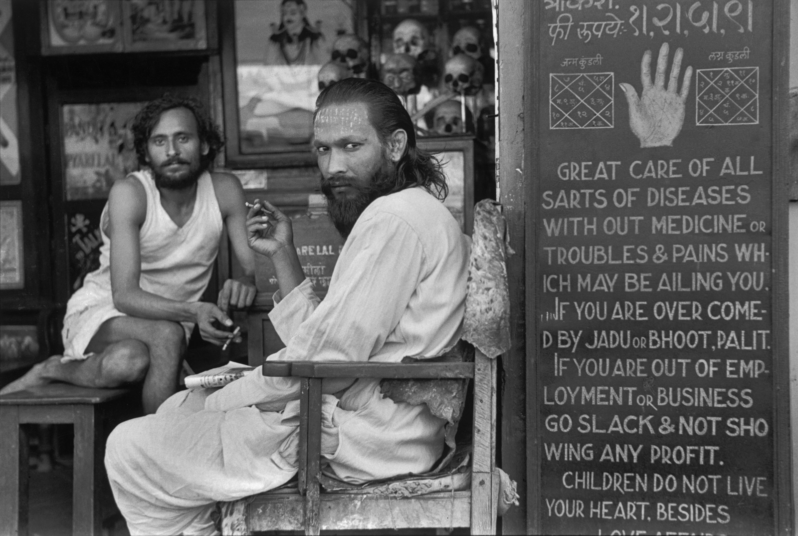 «عطرفروش؛ احمدآباد» (۱۹۶۶) عکسی است که بیشترین قرابت را با کارهای اروپایی کارتیه-برسون دارد. یک پرتره در پرتره از یک دستفروش چاق که نقاشیهای ارزانقیمت و ابزارها قابی به دور او شکل دادهاند. این عکسی پرتحرک و ماهرانه است. اما حتی در همین عکس نیز حسی از خودآگاهی کنایهآمیز وجود دارد. قاب متشکل از نقاشیها خیرهکننده است، اما عکاس را در بیرون صحنه نگه میدارد.