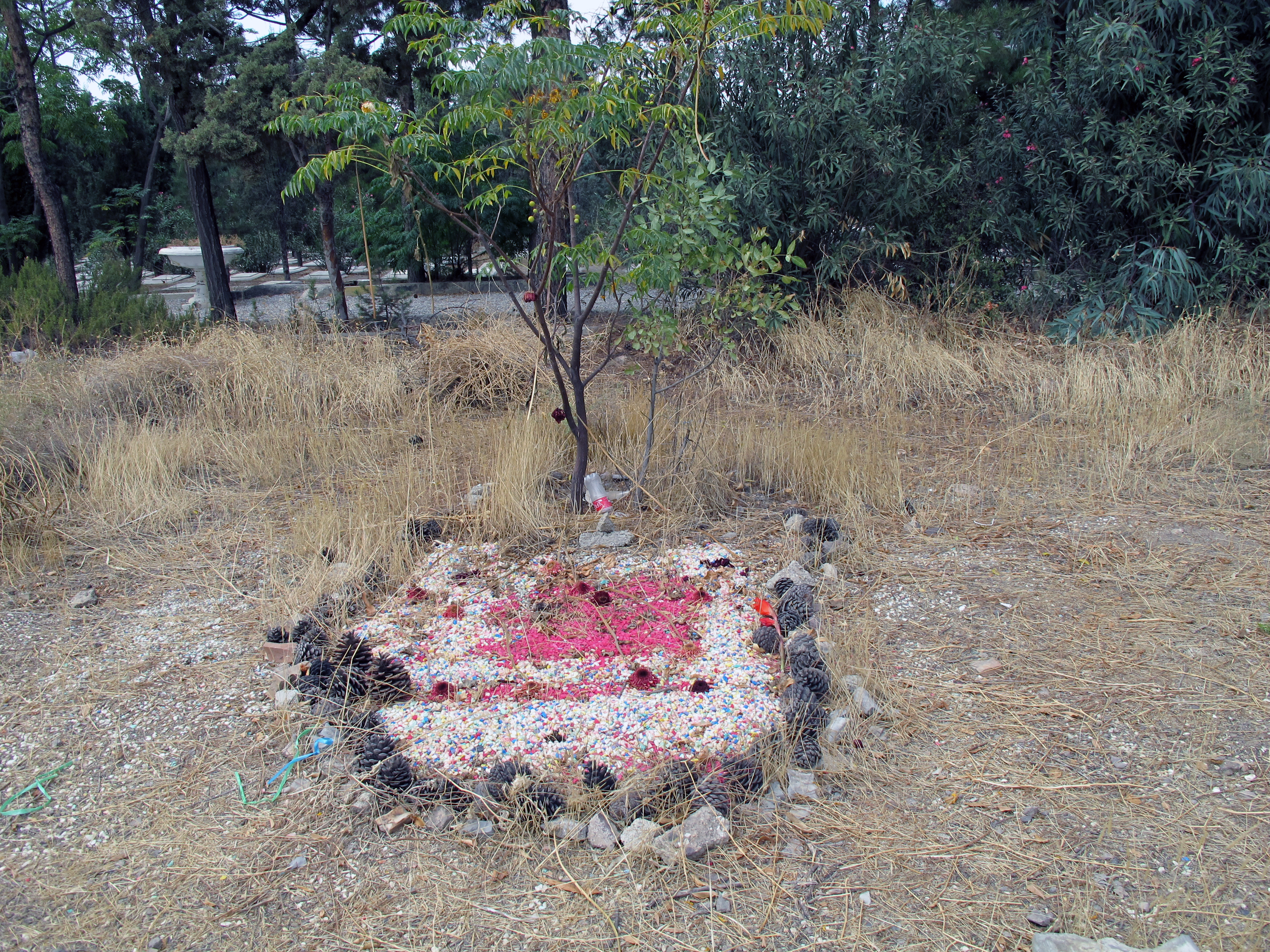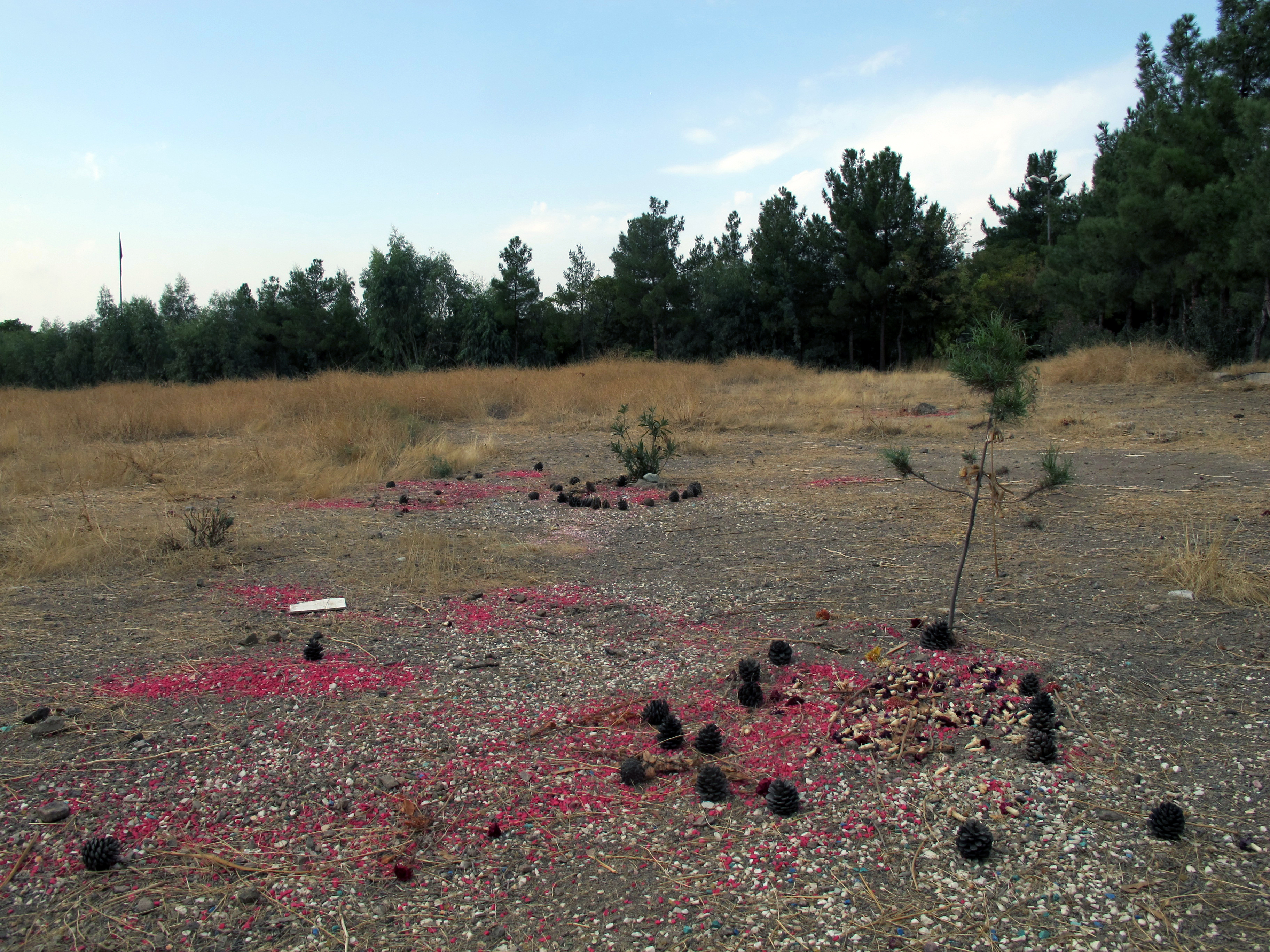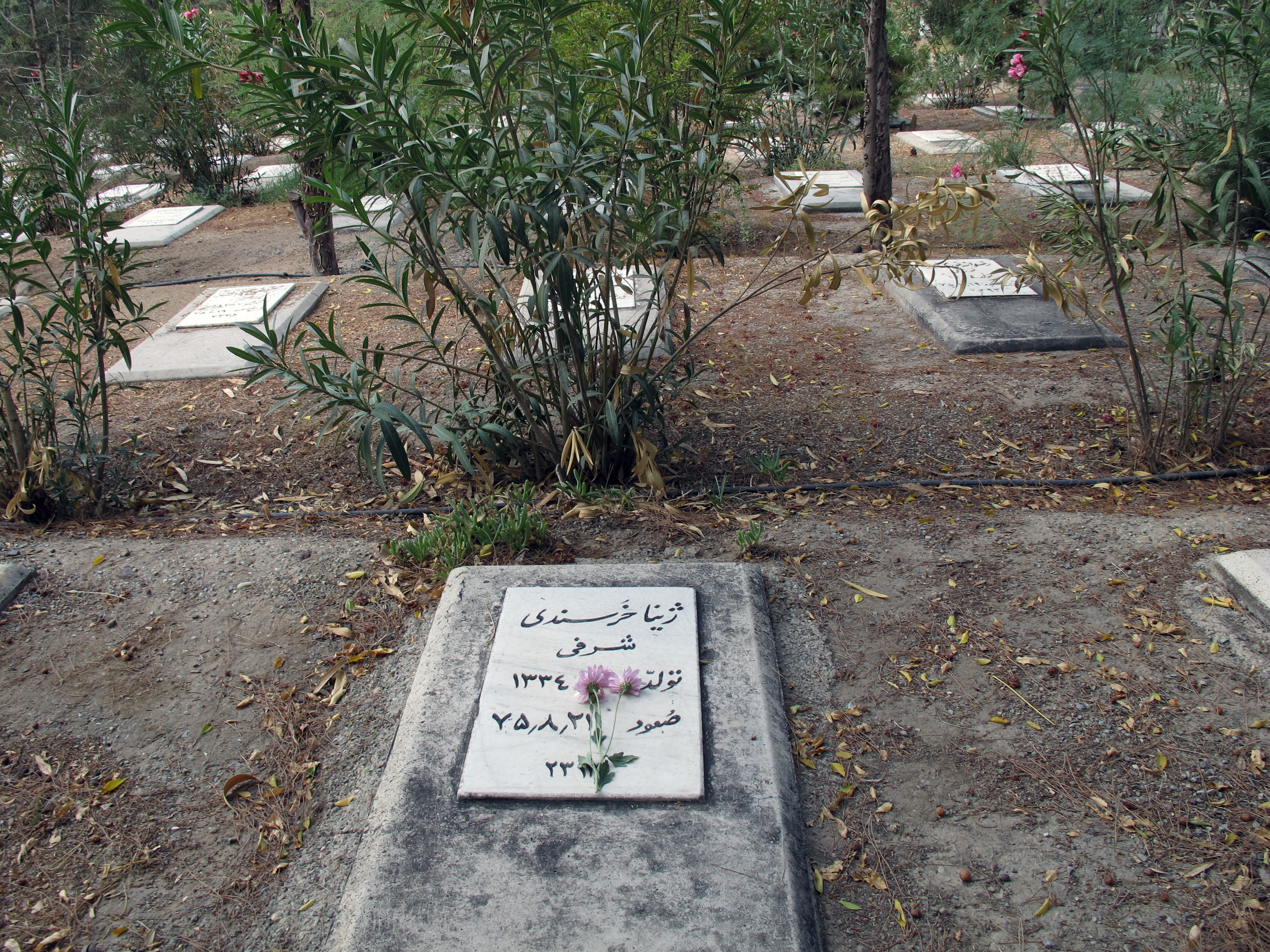 گورستان خاوران، شامل دو تکّه زمینِ خالی در قبرستان بهائیان، در جادهی خاوران واقع در جنوب شرقی شهر تهران، با تمام نظارتهای امنیتی و بینشانی و رهاشدگیاش، در قالب قطعهزمینی خالی، زندهنگهدارندهی یاد کشتهشدگانِ سازمانهای چپ ایران (فدائیان خلق، توده و ...) در کشتار سال ۱۳۶۷ است. رها، بینشان، اینجا و آنجا زینتیافته با سنگریزههای رنگی، فیروزهای و سرخ، و میوههای کاج، یا تکنهالهای نیمهجانی همچنان برپا، و تکوتوک درختچههای در امانمانده، و شاخههای خشک و پراکندهی گلِ سرخ؛ نشانههای خُردِ مقاومت در برابرِ فراموشی...