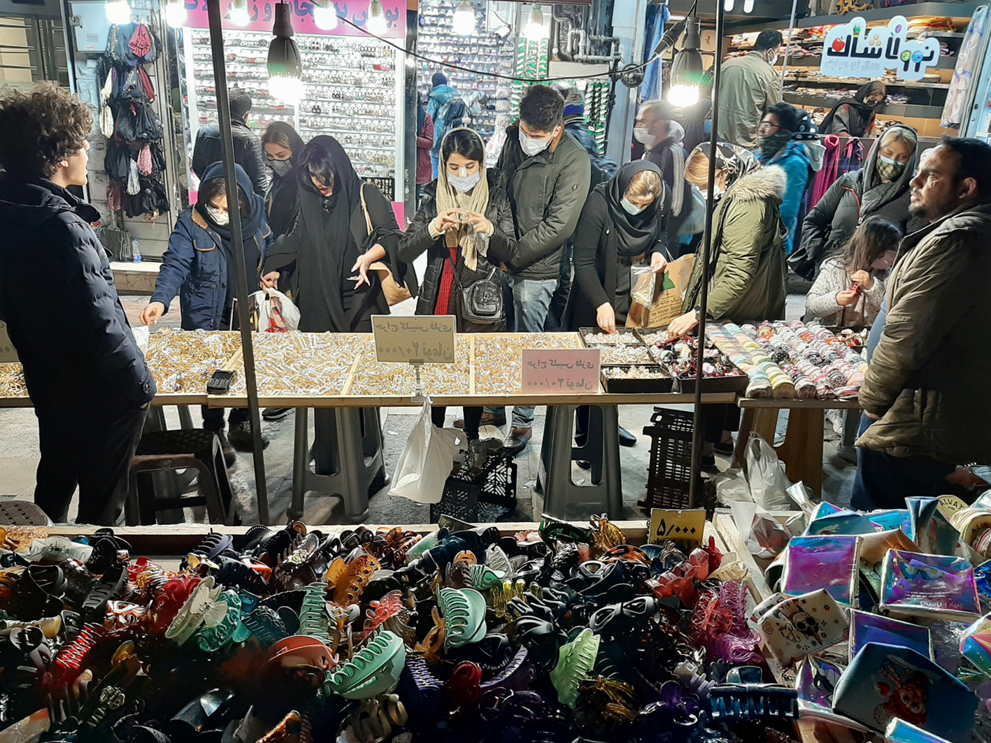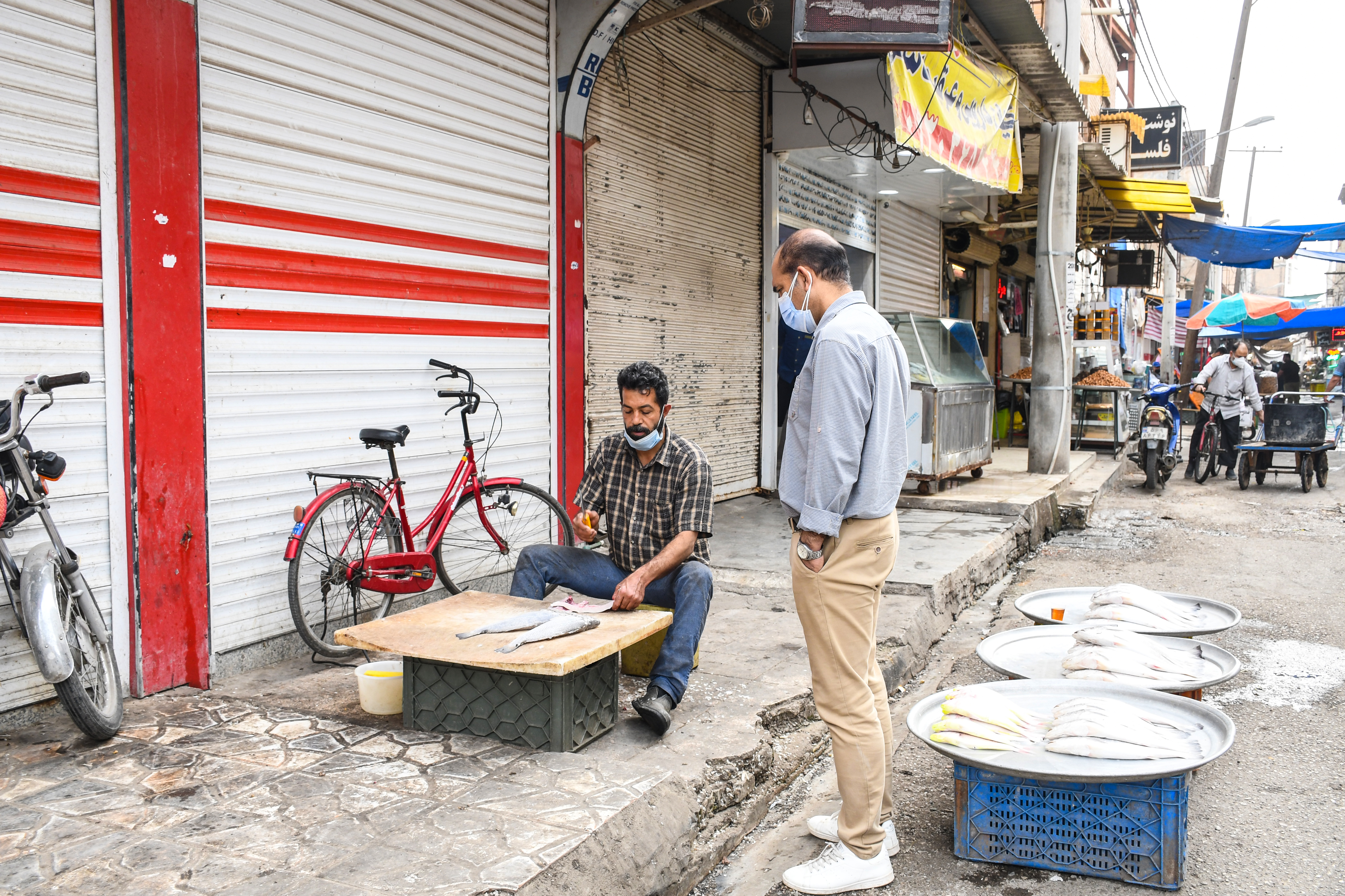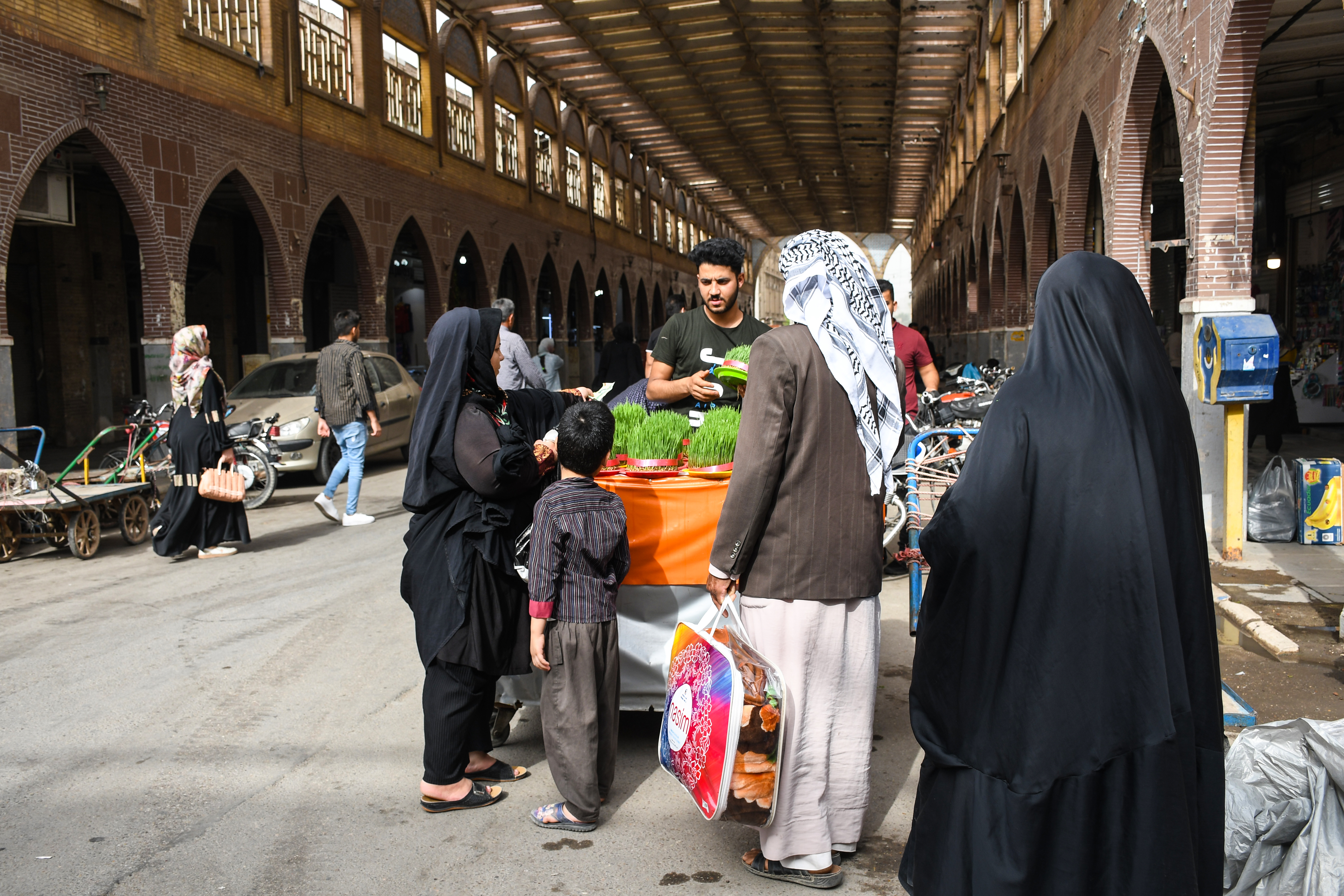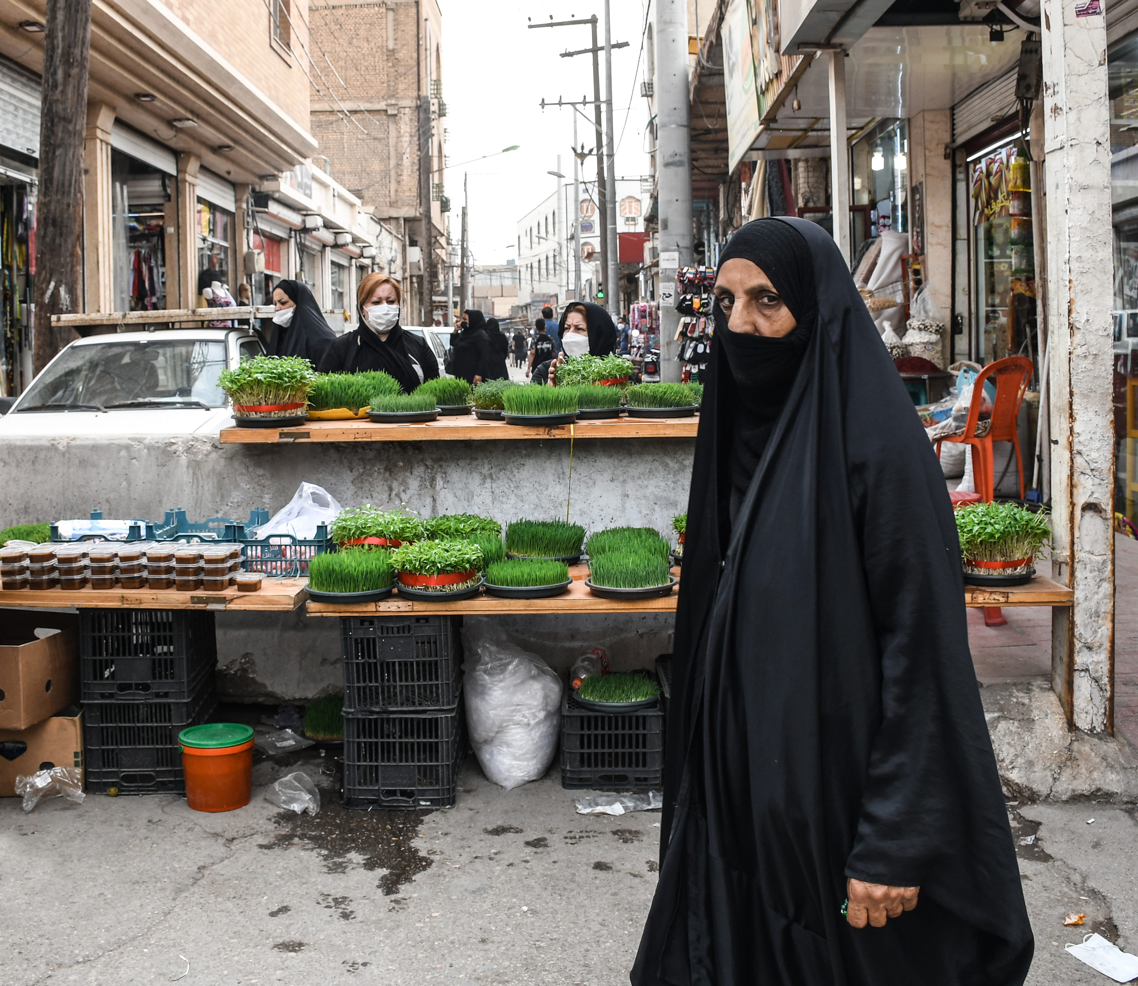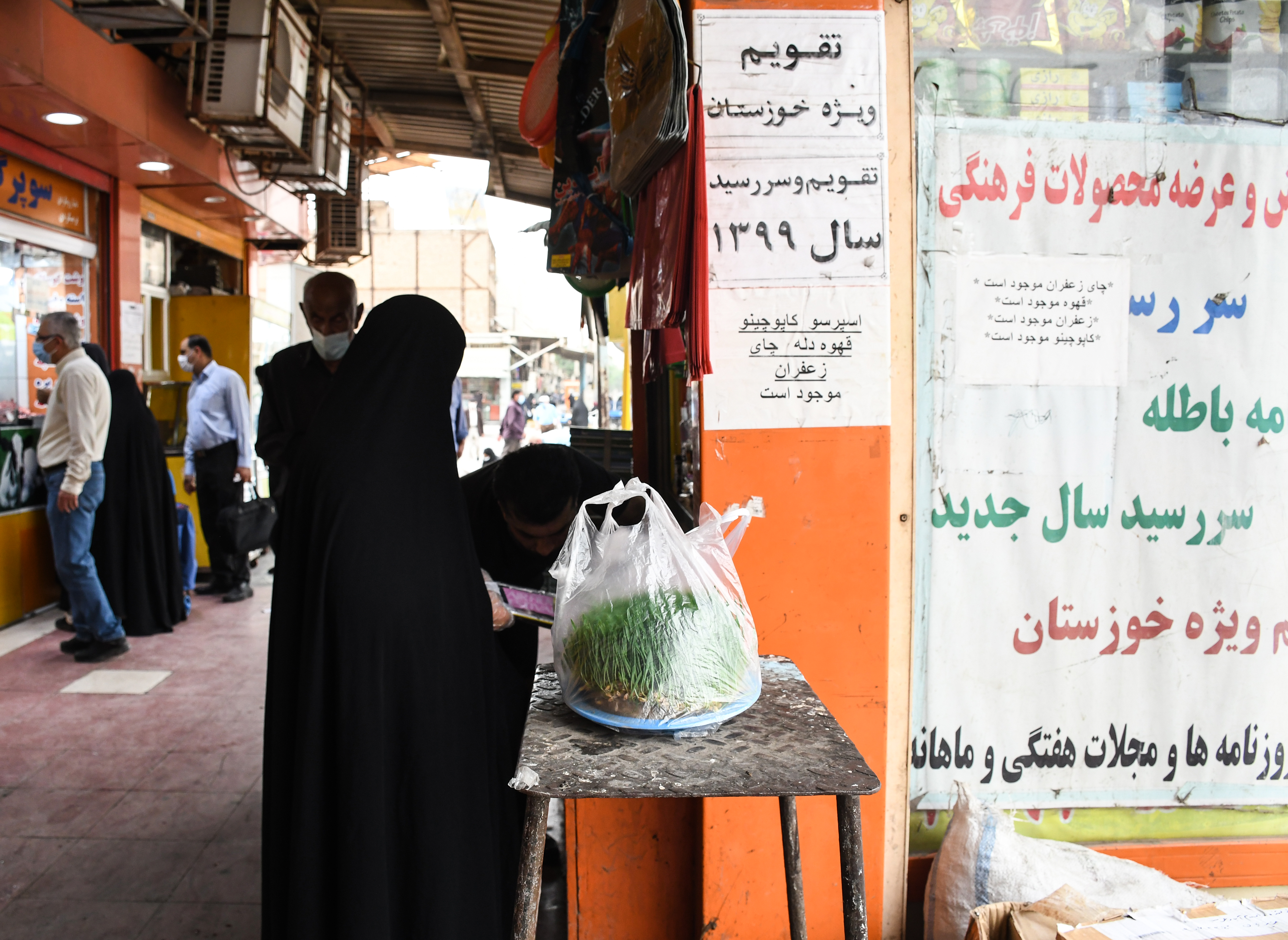 مرکز شهر و محلههای عربنشینِ اهواز. حال و هوای نوروز تحت تأثیر ویروس کرونا مثل هر سال با شور و نشاط همراه نبود با این حال مردم سعی داشتند روحیه ی خود را حفظ کرده و به خرید برای شروع سال جدید بپردازند. (عکس‌ها از شیرین غ)
