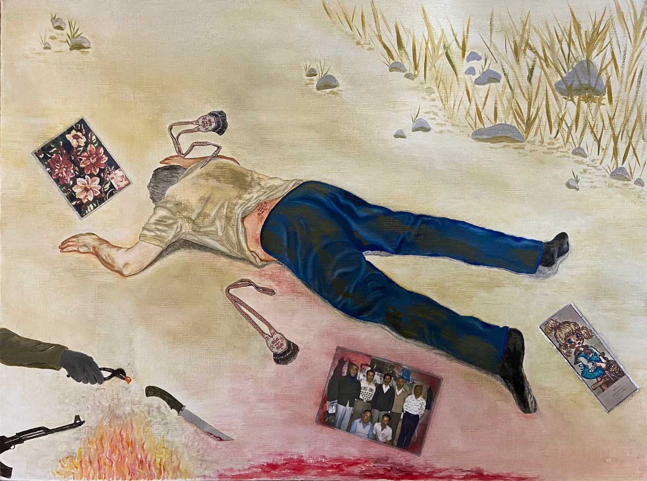 نقاشی‌های او روایتگر این وقایع است و حاصل تحقیق‌های دقیق و گفتگوهای او با کسانی که از نزدیک شاهد آن‌ها بوده‌اند. او می‌گوید سعی دارد در نقاشی‌هایش جزئیات واقعی را ثبت کند، مثلاً کفش و لباس و اشیاء و فضایی که در تصویرها می‌بینیم درست شبیه همان‌هایی‌ست که در واقعیت بوده است.