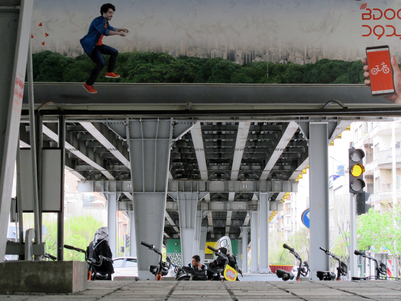مسیرهای مخصوص دوچرخه‌سواری در شهر تهران تکه‌پاره‌اند. با این ‌حال، احتمالاً تنها تسهیلاتی هستند که برای این وسیله‌‌ی نقلیه در نظر گرفته شده‌ است. وقتی به ورودیِ یکی از آن‌ها رسیدم مانعی بزرگ سر راهم بود، یک سطل زباله‌ی بزرگ شهری که مسیرم را سد کرده بود. مجبور شدم که باز هم مسافتی را در پیاده‌رو طی کنم تا بتوانم از یک بریدگی خودم را به داخل مسیر برسانم. بالاخره به مکانی نیمه‌استاندارد رسیده بودم و احتمالاً قرار بود که این بخش از سفرم لذت‌بخش‌ترین قسمت باشد. مسیرْ دوطرفه بود و می‌توانستم دوچرخه‌سوارهای دیگر را ببینم. برایم جالب بود که اکثر استفاده‌کنندگان از سرویس‌های بیدود دخترها بودند. اکثراً از وسایل ایمنی استفاده می‌کردند. در حال فکر کردن به این مسائل بودم که با انبوهی از آدمها مواجه شدم. سرعتم را کم کردم و تقریباً با کمک پاهایم از کنارشان رد شدم. صف اتوبوس بود! درست روی مسیر دوچرخه! کم‌کم متوجه شدم که این مسئله چندان غیرعادی نیست. روی مسیر پُر بود از موانع بی‌جا. غیر از عابران پیاده‌ و موتورهایی که تصمیم گرفته بودند در این مسیر حرکت کنند، جا به جا به موتورهای پارک شده، سطل‌های زباله‌ی رها شده و حتی دوچرخه‌های پارک شده برخورد می‌کردم. وقتی به انتهای مسیر دوچرخه‌سواری رسیدم آنقدر خسته بودم که مجبور شدم از دوچرخه پیاده شوم، جایی کنار یک صندلی پارکش کنم و برای کمی رفع خستگی بنشینم.