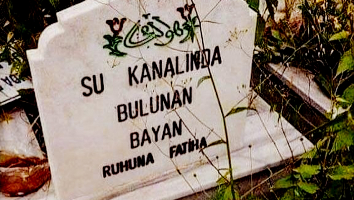 روی سنگ قبری به زبان تُرکی نوشته شده Su kanalında bulunan ــ یعنی غرق‌شده در کانال آب.