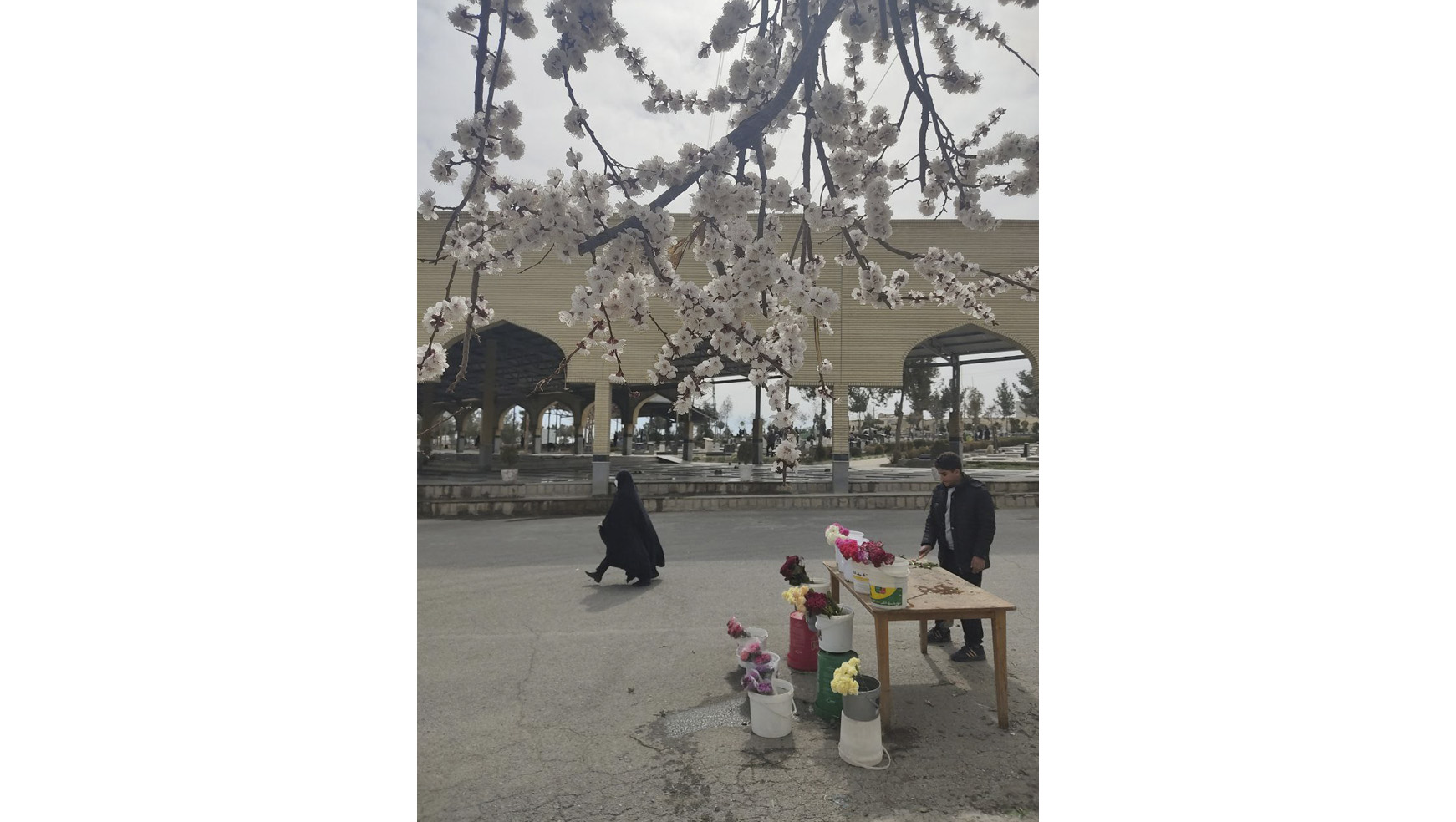وارد میدان که شدم، اتومبیلها و مأموران نیروی انتظامی به چشم میآمدند. از کنار مأموران که عبور کردم، تابلوی بزرگ اولین ورودیِ باغ فردوس مشخص شد: «باب الزهراء». از اینجا به بعد، بساط دستفروشها پهن شده بود. اولین بساط، مردی بود که سبزهی عید میفروخت. خودش آن سمتِ نردهها و داخل محوطه ایستاده بود و ظرفهای سبزه را این سمت، بهردیف روی سکو چیده بود. بهموازات نردهها حرکت میکردم و گهگاه دستش را میدیدم که برای دریافت پول از مشتری از بین نردهها بیرون میآمد. تا ورودیِ اصلی که «باب النبی» نام داشت، فاصلهی چندانی نیست. تراکم فروشندهها اینجا از هرجای دیگری بیشتر است. هم دستفروشها و هم چند تایی دکه. تعداد پلیسها و مأموران شهرداری، اینجا افزایش مییابد. نیروهای انتظاماتِ آرامستان با لباسی که به لباس سازمانیِ بسیج شباهت دارد، جلوی ورودیها با بیسیمی در دست قرار گرفتهاند. هوا کمی سوز دارد و کودکی که پشت میز یکی از دکهها نشسته و شیرینی میفروشد، کاپشن و کلاه پوشیده است. مشغول نگاهکردنش هستم و در همان لحظه، مردی که کنار چند سطل گل ایستاده بود، فریاد میزند: «گل برای پرپرکردن، شاخهای فقط پنجهزار تومان.»