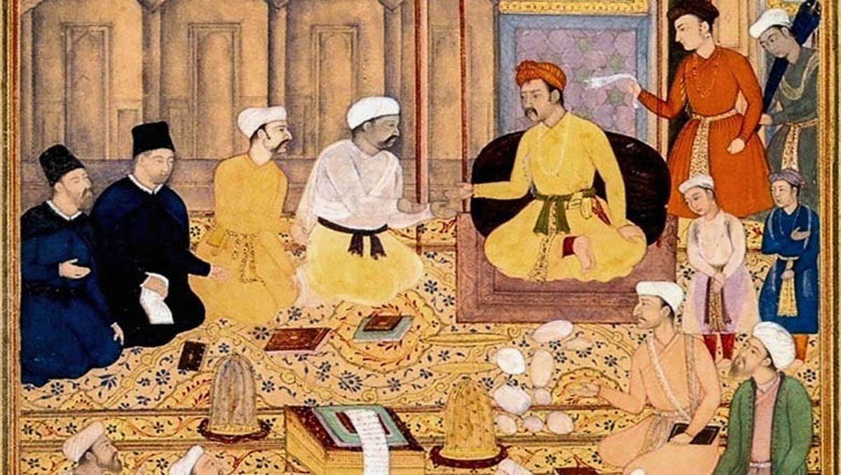 ( جمعی از روحانیان ادیان مختلف، اثر میر کالان خان، امپراتوری مغول، ۷۵-۱۷۷۰. موزه‌ی هنر متروپولیتن، نیویورک)