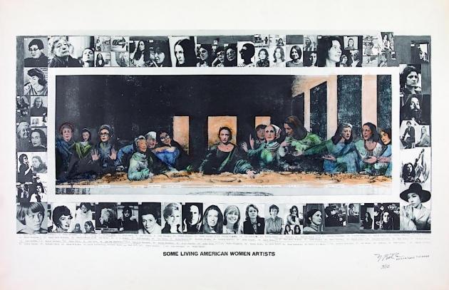 مری بث ادلسون، هنرمند فمینیست آمریکایی، خالق یکی از مهمترین نمادهای جنبش زنان بود. او در اثرش به نام «شام آخر»، تابلوی مشهور لئوناردو داوینچی را وام گرفت و به جای صورت تمامی مردان حاضر در تابلو صورت زنان هنرمندی را گذاشت که بسیاریشان عملاً از تاریخ هنر که مردان نوشتهاند حذف شدهاند. او صورت جورجیا اوکیف، نقاش مدرنیست آمریکایی را به جای صورت مسیح گذاشت. اوکیف، چون همسر عکاس معروف، آلفرد استیگلیتس بود، بسیاری تصور میکردند هنر و استعدادش را مدیون اوست، و کارش تا مدتها در سایهی او و کمرنگ باقی ماند. در شام آخر، مری بث ادلسون علاوه بر جورجیا اوکیف، یوکو اونو و جودی شیکاگو را هم، نشسته دور میز، تصویر کرده است. اشارهی صریح این اثر به حذف زنان در طول تاریخ آنچنان قدرتمند بود که با تکثیر سریع و فراوانش در قالب پوستر و نماد، به نمایندهی بصری جنبش زنان در تیراژی وسیع بدل شد. ادلسون در این اثر، سنتهای مذهبی مردسالار را سخت به چالش گرفته است و غیبت زنان را در جایگاه شخصیت مؤثر و نه فقط فرمانبر به رخ میکشد.