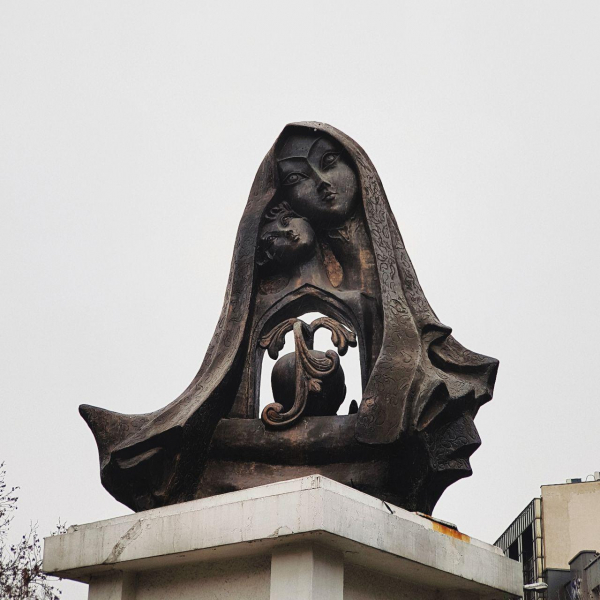 زن در آن مجسمه، سراسر به دقت پوشیده و با حجاب است، از تنش فقط صورتش پیداست و جای سینهاش، قلبی دارد که با طرح اسلیمیهای هنر اسلامی تزیین شده است. زن کودکی را در آغوش دارد. سازندهاش در روز نصبِ مجسمه در شمال تهران، بر عرفانی بودن پیام مجسمه و تقدس رابطهی مادر و فرزندی تأکید کرد.