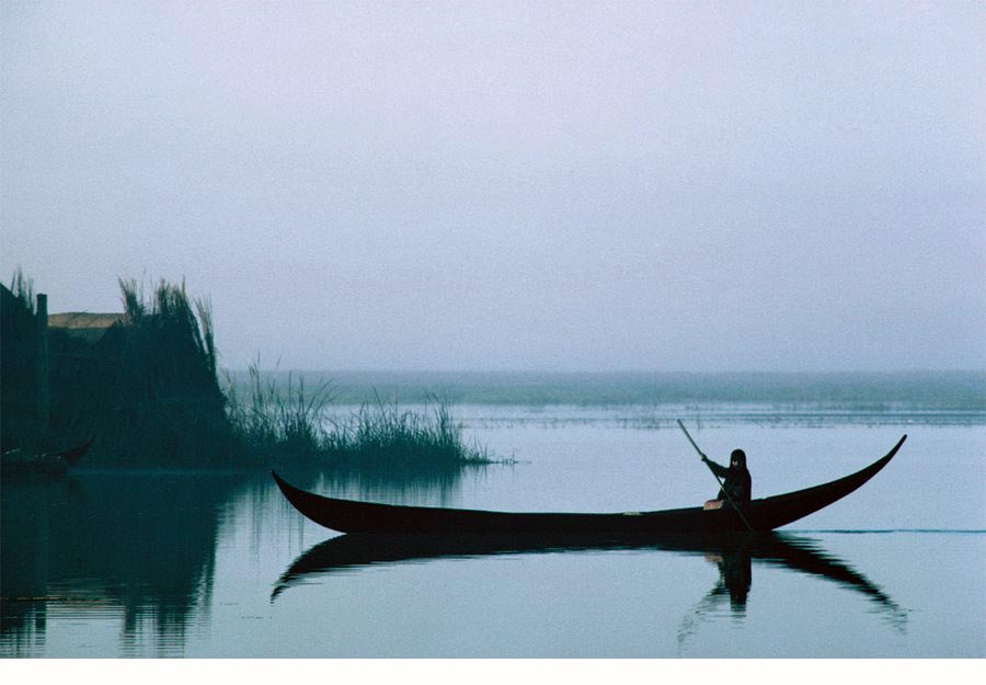 بیشک این مأموریت کاری یکی از به یاد ماندنیترین مأموریتهای زندگی من بوده است، هرچند عکسهای این سفر تا سال 2013 چاپ نشدند، و بعد از آن بود که به شکل کتاب نیز منتشر شدند. عربهای نواحی مرزی در باتلاقهای مرکزی پاییندست جنوب عراق، بین رودهای دجله و فرات، زندگی میکردند. منطقهی وسیعی از نواحی مرزی. اما این عکس خاص: به یاد میآورم که یک روز صبح آن را گرفتم، احتمالاً حدود 4 صبح. با عدهای از این مردم در جزیرهی کوچکی اقامت داشتم. من این بَلَم را دیدم که آهسته از کنار ما میگذشت. در این فکر بودم که در عالمی یکسره متفاوت حضور دارم، عالمی متعلق به 2000 سال پیش. اما این واقعیت نداشت. تمام آنچه درک میکردم آنجا در برابرم بود، هیچ احساس بیگانگیای با آن نداشتم، اما این تجربه مثل زندگی کردن در عالمی متفاوت بود، کاملاً متفاوت با آنچه پیش از آن میشناختم. در حقیقت، عالمی آبگون.