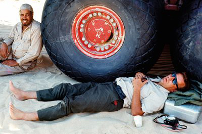 یآورم مهارت باورنکردنی رانندهها در گذشتن از میان ریگهای روان و دور و اطراف تپههای شنی بود. آنها همه بادیهنشین بودند، در این جهان شنی به دنیا آمده و پرورش یافته بودند و به آن خو گرفته بودند. من اگر بودم، در عرض پنج دقیقه گیر میافتادم. چیز دیگری که از آن سفر به یاد میآورم یک شب خوابیدن در میان شنها بود، و آن وقتی بود که توفان شن از همیشه کمتر بود. باید خیلی خسته بوده باشم که تمام طول شب را تخت خوابیدم. از خواب بیدار شدم و با وحشت دیدم که هیچ یک از اعضای بدنام را نمیتوانم تکان بدهم، جز سر و بینیام را. در میان شنها دفن شده بودم. احساس وحشت میکردم، تا این که رانندهی یکی از کامیونها مرا پیدا کرد و کمک کرد تا از لای شنها بیرون بیایم. راحت شدم، خاک و خل را از خود تکاندم، و پیش از این که دوباره به راه بیافتیم صبحانه را با رانندهها (نان و چای شیرین) خوردم.