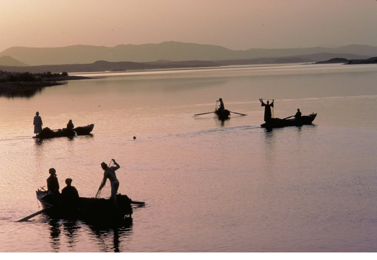 هیچ کس به مصر از منظر دریاچههایاش نمینگرد، جز در مورد سدِّ بلند آسوان و دریاچهی ناصر، و تأثیراتی که بر آن کشور و کشاورزیاش دارند. تأثیراتی به همان اندازه خوب که بد. داستاناش مفصل است. موضوع گزارش من به اطلاع عموم رساندن این بود که واقعاً در مصر چند دریاچه هست. آنچه بیش از همه به یاد میآورم زیبایی محض بسیاری از آن دریاچهها است، چنان که در این عکس، که به راستی یکی از عکسهای محبوب من است، پیدا است. از قضا، این عکس تقریباً درست در همان جایی برداشته شده است که در سال 1964 داشتم از کارگرانی عکس میگرفتم که در حال بستن رود نیل بودند، این دقیقاً همانجا است. اکنون در آنجا دریاچهی بزرگی است که به سودان راه دارد.