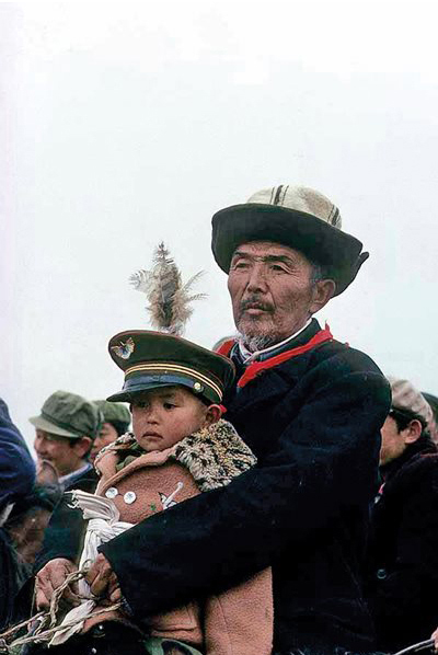 در شینجیانگ، در غرب چین، در اطراف کاشغر مردان اهل قبیلهها گرد آمدهاند. به نظر میرسید بیشتر این مردم کم و بیش در پشت اسب روزگار خود را میگذرانند. من این عکس را خوب به یاد میآورم، عکس مرد سالخوردهای با، احتمالاً، نوهاش در لباس رسمی چینی. مسابقات اسبسواری برقرار بود، و نیز چیزی مثل مسابقات چوگان با سر بُز، یا چیزی از این قبیل، که از زمین بر میدارند و به این سو و آن سو پرتاب میکنند. به راستی هیجانانگیز است. آن جمعیت انبوه را نیز به یاد میآورم. آن قدر به جوش و خروش آمده بودند که مأموران پلیس چین، که محلیها چندان دل خوشی از آنها ندارند، در آنجا مستقر شده بود. دست آخر پلیس از ما خواست محل را ترک کنیم، چون با تندتر شدن آتش رقابت و رجزخوانی میپنداشتند که چه بسا نزاعی رخ دهد.
