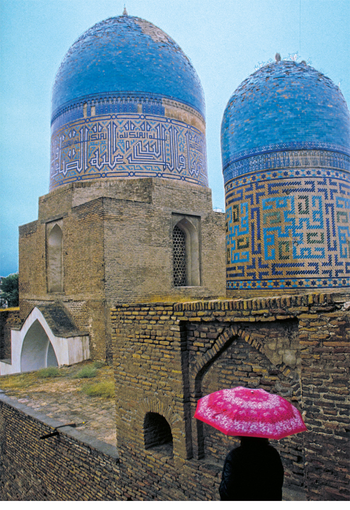این عکس از سمرقند برداشته شده است. آنچه در مورد آن برای من بیش از همه جالب است این است که در حین بارش باران گرفته شده، در جایی که تقریباً هرگز در آنجا باران نمیبارد. به طور کلی به من گفتهاند که در آن منطقه عکسهای من بیشتر از آن رو جالب است که از باران آمدن گرفته شده است. چترها در جایی باز شده است که شما هرگز در آنجا چتری نمیبینید. این لحظهای خاص در سفری بس دور و دراز و پرهیجان، سرشار از خوشیها و نیز مشکلات بسیار، است.