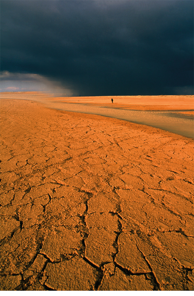 مهمترین خاطرهی من مربوط به رفتن به بادیه است ــ صحرای بزرگ شرقی در این منطقه را به این نام میخوانند ــ به همراه یک راهنمای اردنی که به یاد نمیآورم به دنبال چه بود. در دوردست میتوانید توفانی سهمگین با ابری سیاه را ببینید، که پر از آذرخش بود. ما کاملاً از پناهگاه خود دور شده بودیم. به یاد میآورم که در این فکر بودم که، «اگر آن توفان الان به ما برسد، بدجور گرفتار میشویم.» ما سوار ماشین دو دیفرانسیل نبودیم، فقط یک وانت کوچک داشتیم، و واقعاً به دردسر میافتادیم. این لحظهی دیدن یکی از زیباترین صحنههای صحرا بود که تا به حال دیده بودم و از آن عکس میگرفتم، همراه با این نگرانی که زود به ماشین خود برگردم و به سرعت از آنجا خارج شوم.